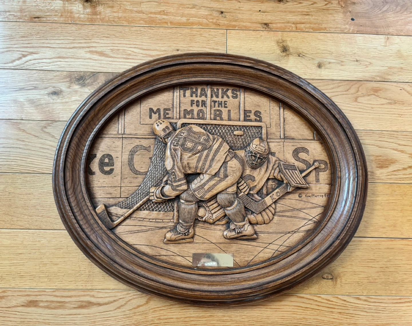 Kim Murray 99. in excellent condition.metal plate says "99 The Great One"..approx. 20" x16.5" oval..