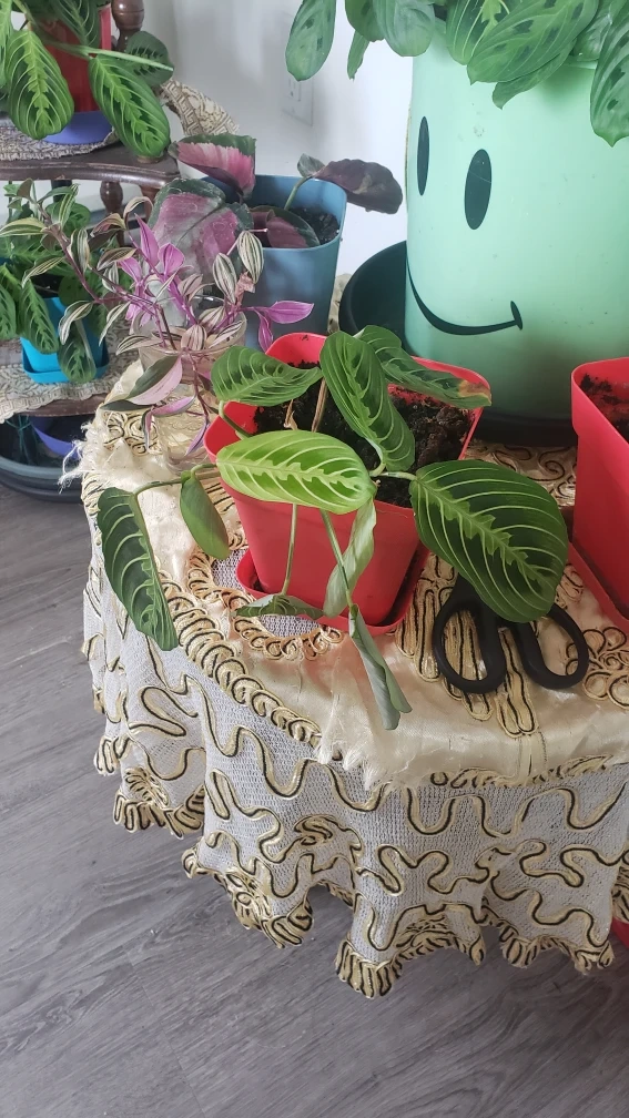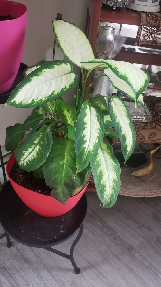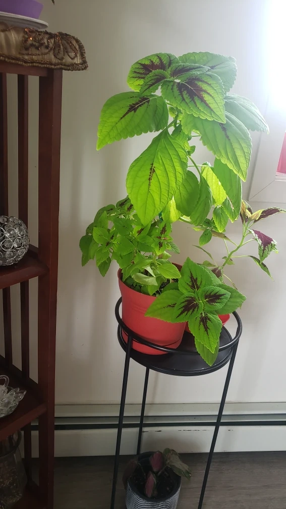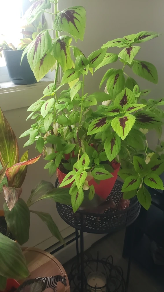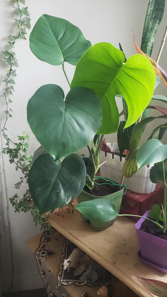 23Five healthy houseplants for sale. Includes a Monstera deliciosa, parlour palm, Dieffenbachia, Calathea, and Coleus. Various pot sizes and colours. Great for adding greenery to your home.