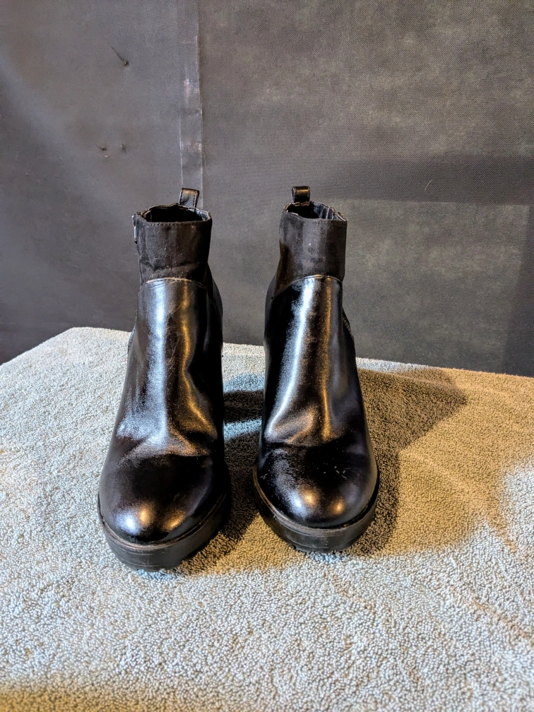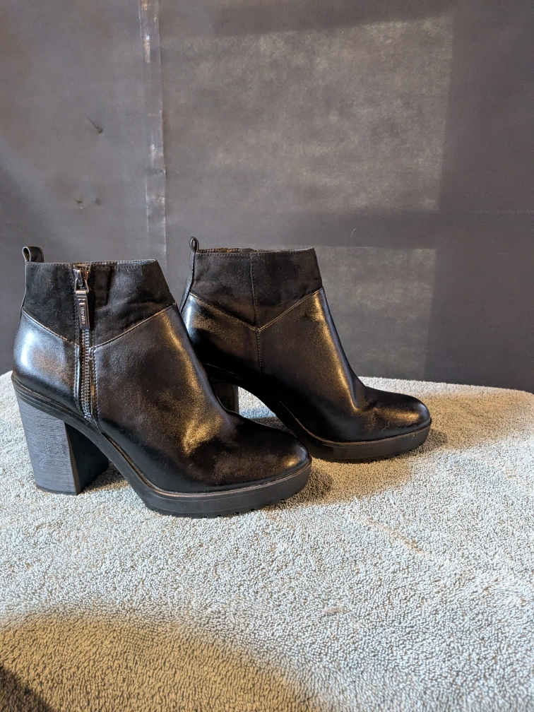 Buy & SellBlack Leather Block Heel Ankle BootsBlack Leather Block Heel Ankle Boots$15Women's black ankle boots. Block heel. Side zipper. Leather upper. Good condition.ConditionGoodSize40BrandBershka 1 chats·0 favorites·30 viewsSELLERverifiedBrendanWaverley861 reviewWHERE TO MEETTim's at Victoria and Woodlawn