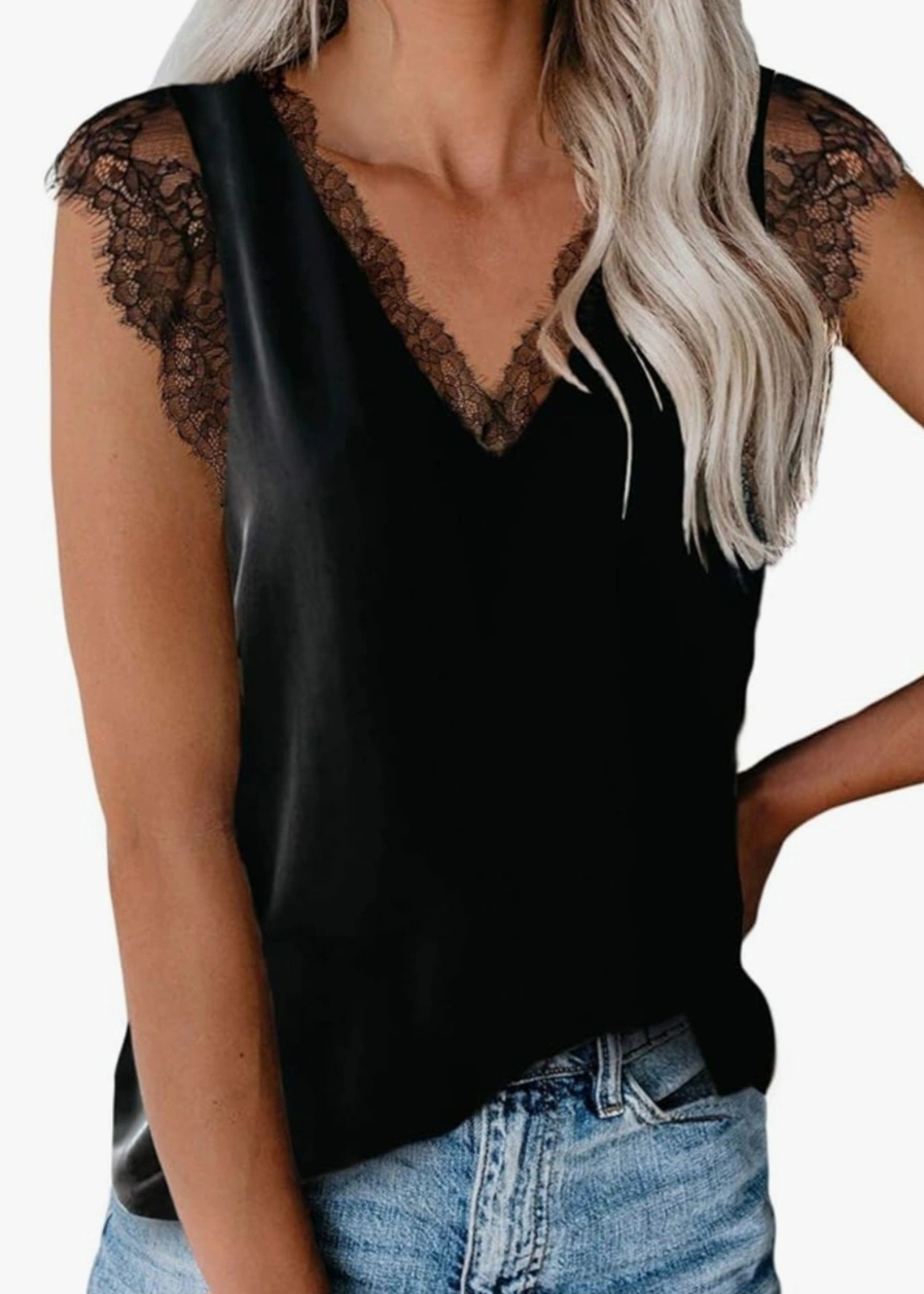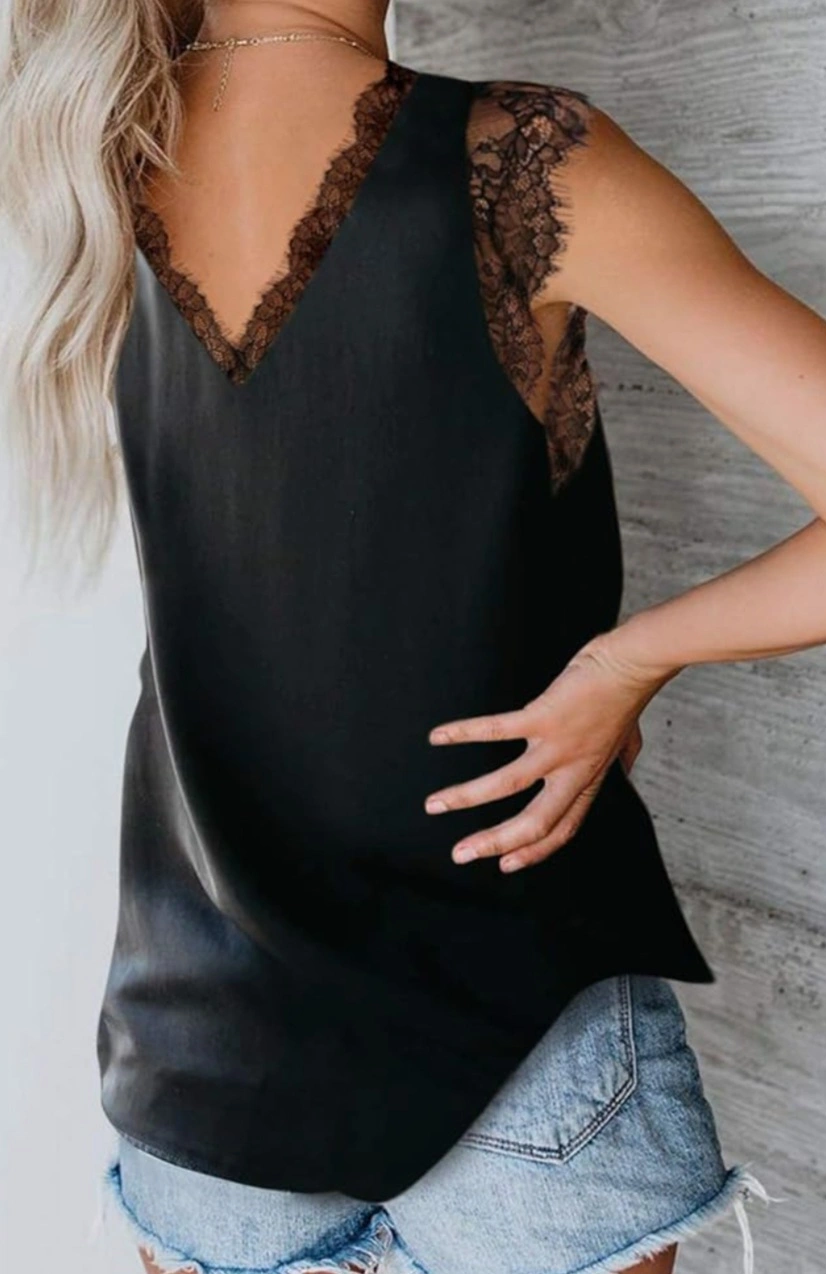 Black Lace Trim Cami Top