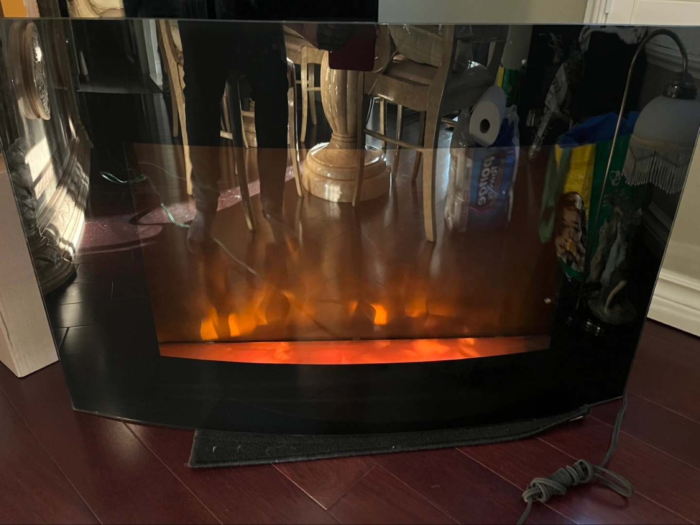 Beautiful Curved glass electric fireplace. Enhanced and warm up any room. Black frame with 3 setting.
