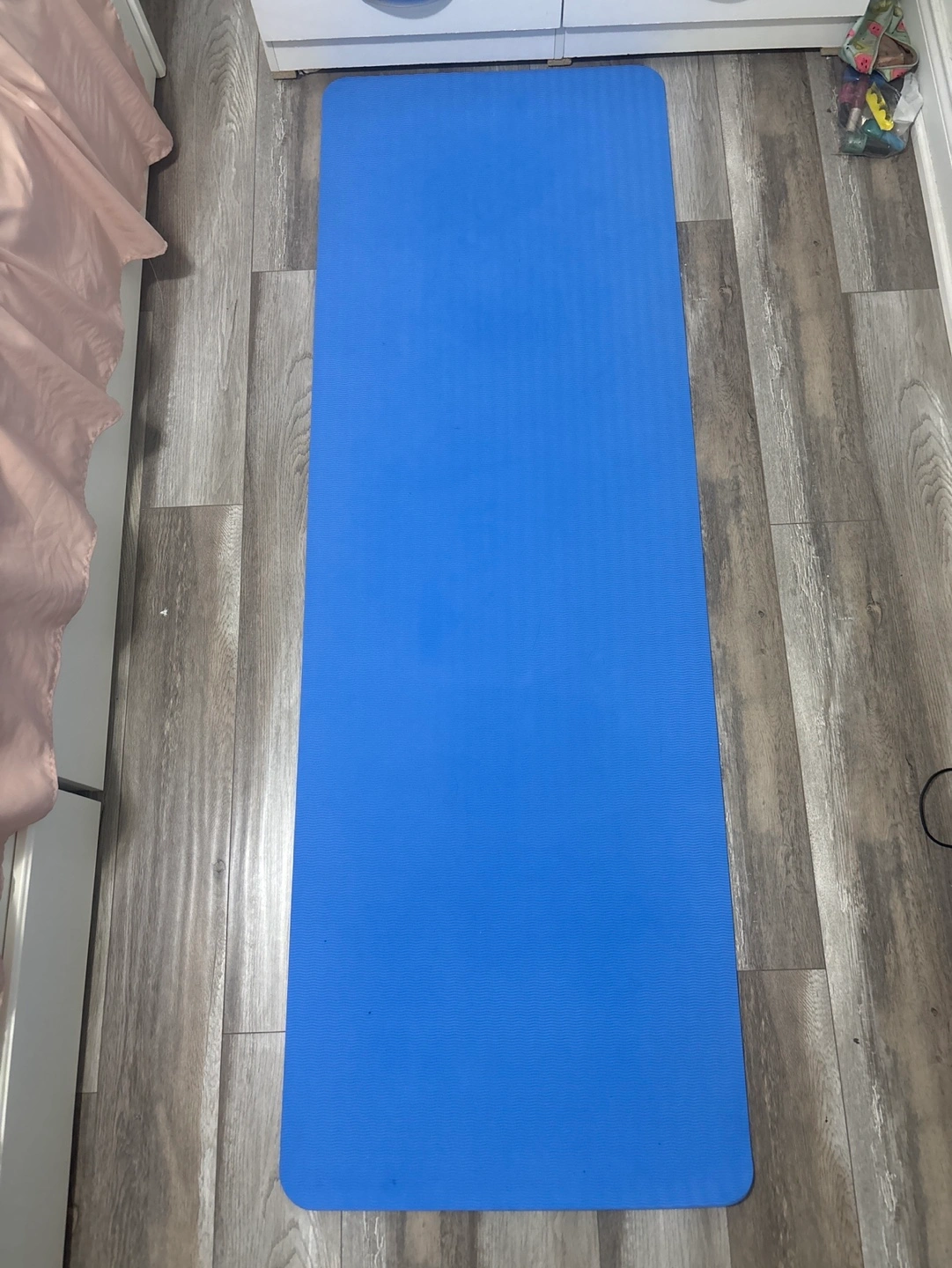 Long, rectangular blue yoga mat. Perfect for home workouts. Good condition. Only used few times . Selling it because I don’t like the colour