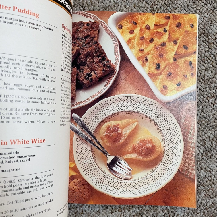 Creative Cuisine series cookbook. 100 delicious recipes. Many tempting dessert choices. Recipes include Zabaglione, Butter Pudding, Pears in White Wine, and more.