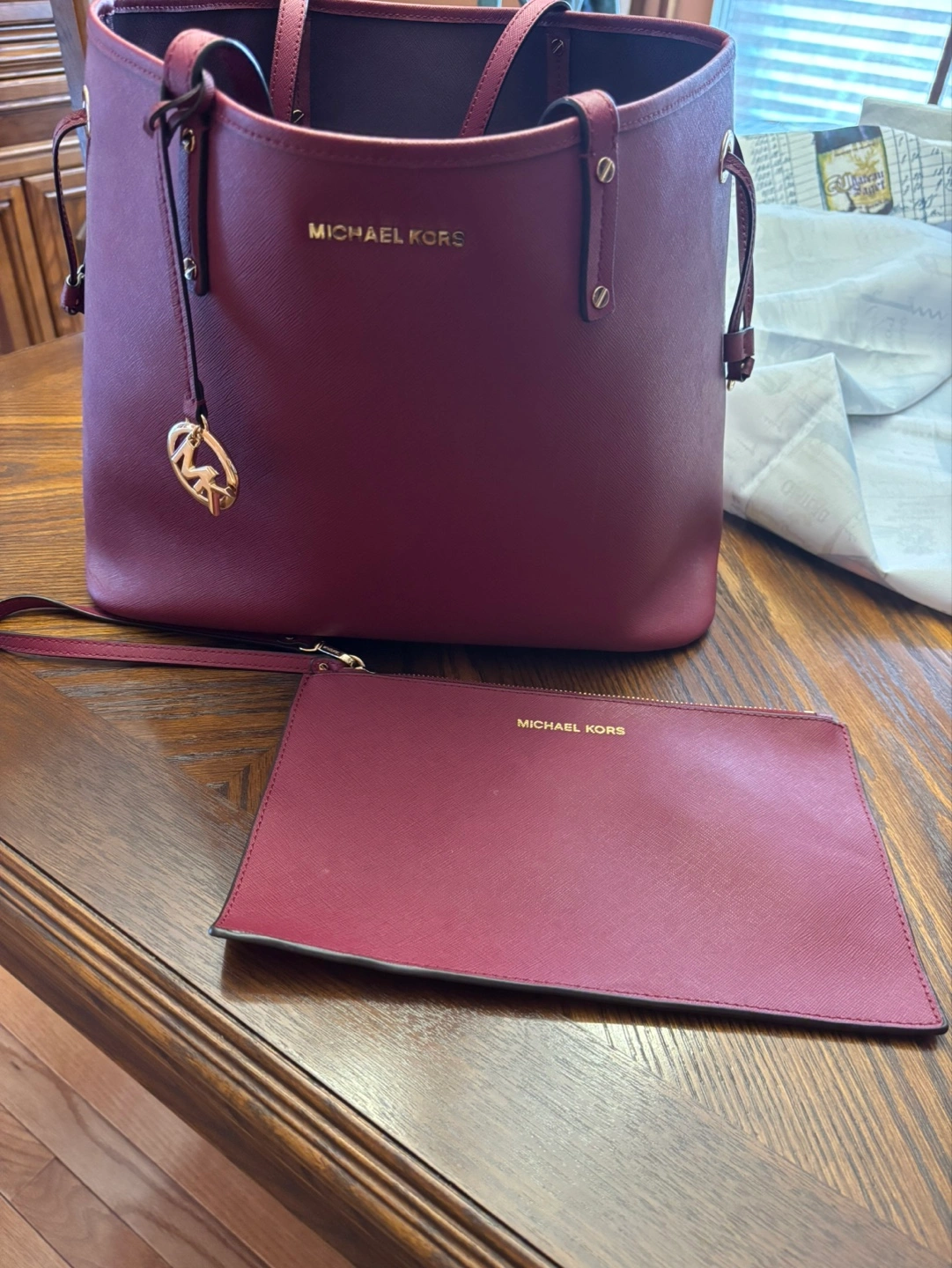 Buy & SellMichael Kors Tote purse wine colourMichael Kors Tote purse wine colour$80Beautiful wine colour leather tote bag and matching wristlet. Gold hardware. Great condition.ConditionLike newWHERE TO MEETMarkhamView MapSELLERverifiedMelissaDowntown Markham792 reviews3 chats·2 favorites·147 views