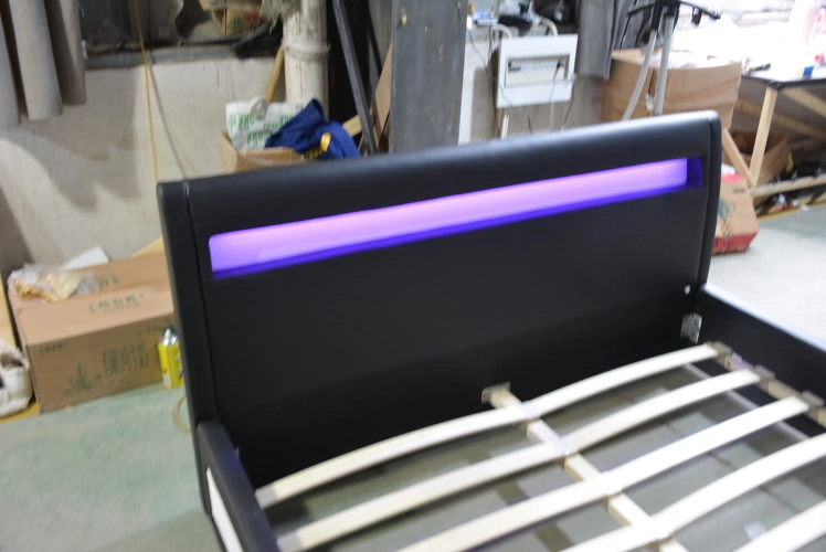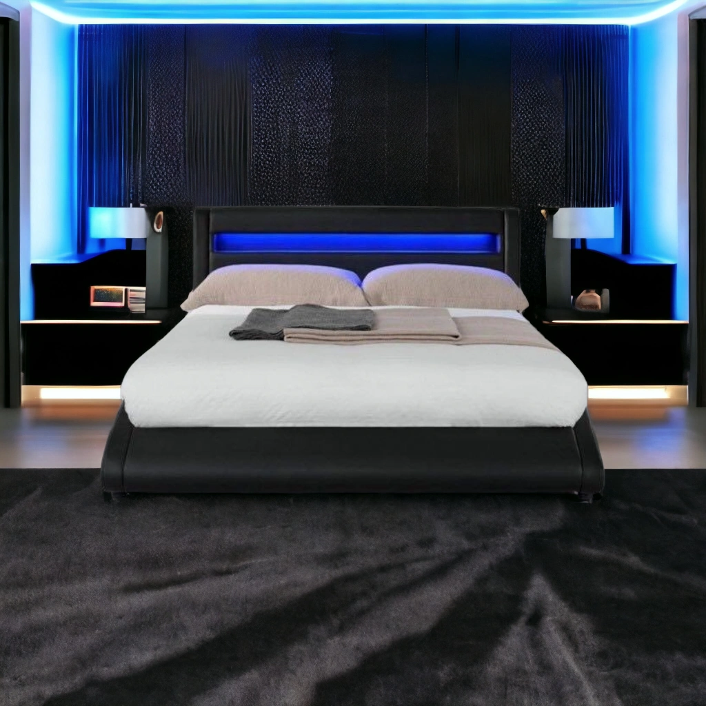 Transform your bedroom with the LED Luminous Bed Frame. This modern bed features a sleek leather finish, LED lighting on the headboard, and a simple, stylish design. Available in Black and White or White and Black, it's easy to assemble and comes in 3 cartons for convenient shipping. Brand new in the box, with warehouse sale prices and delivery available.