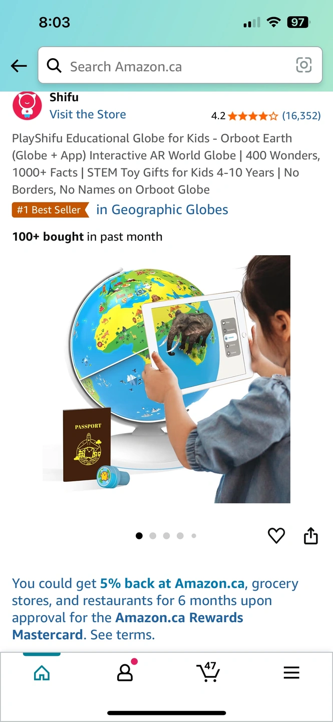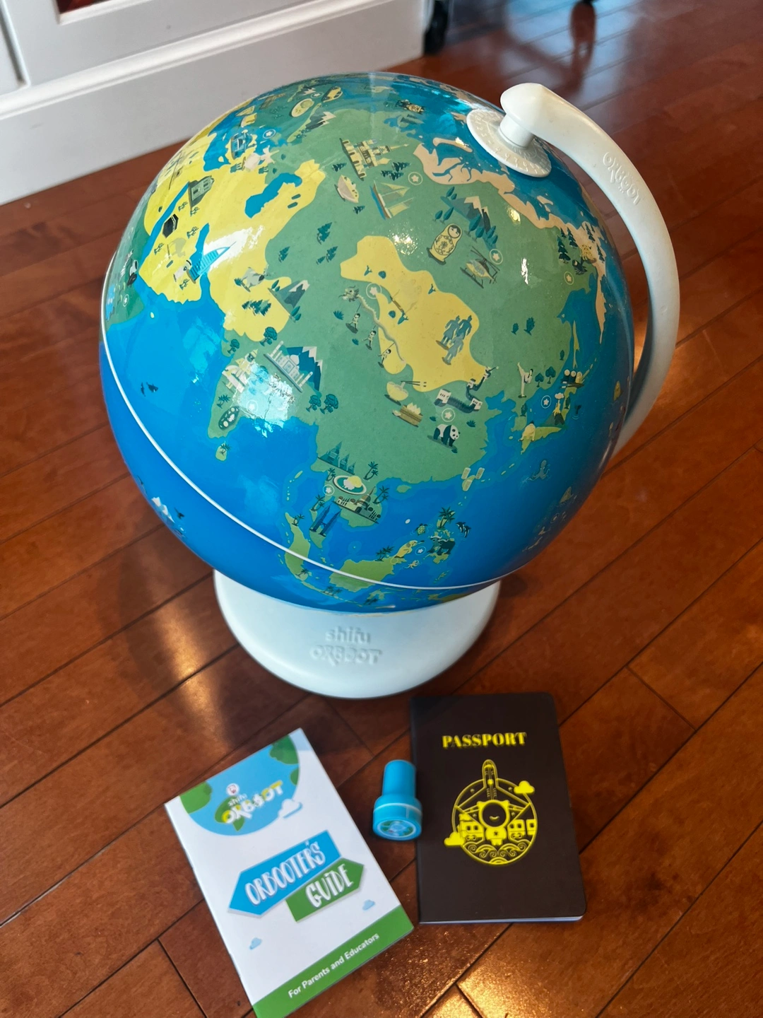 10” Educational globe for children. Features augmented reality. Includes passport and stamp which are brand new. Fun learning toy. For ages 4-10. Pick up only.