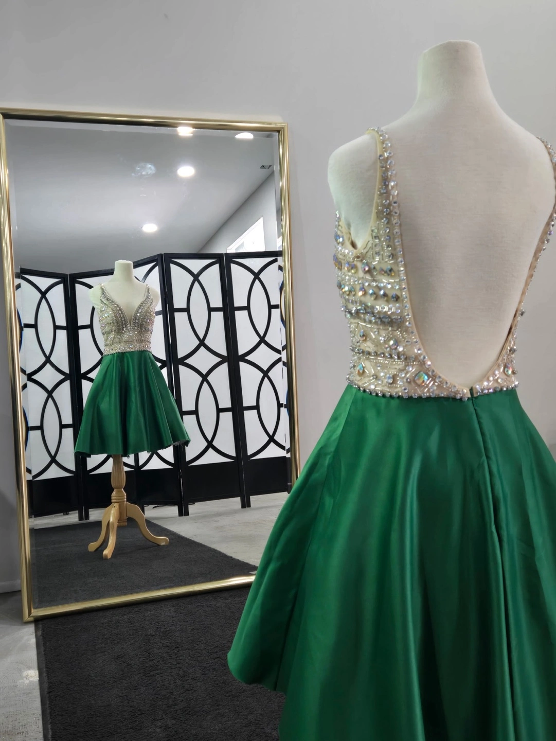 Emerald Green Beaded Homecoming Dress