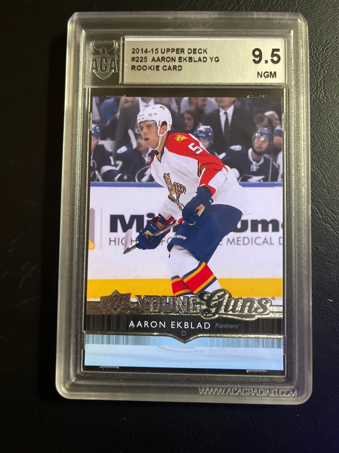 Graded 9.5 by NGM. Aaron Ekblad rookie card. Part of the 2014-15 Upper Deck Young Guns series. Numbered #225.