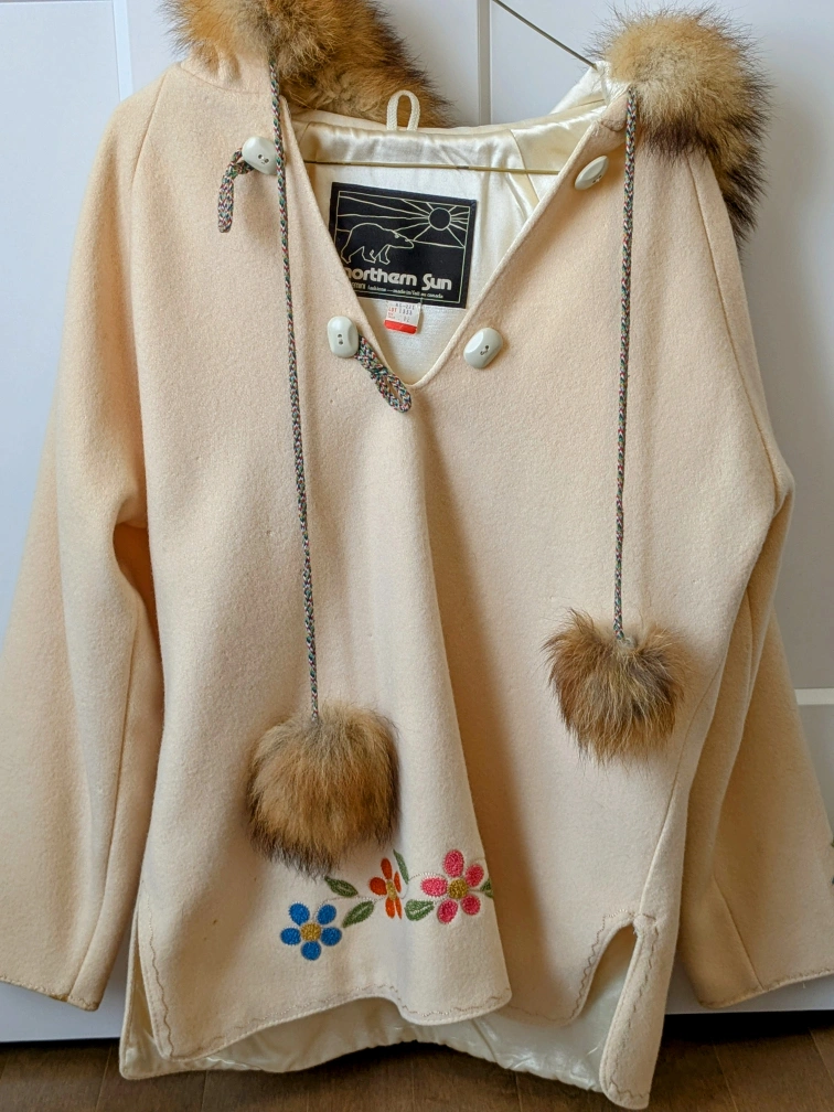 Vintage 1980s hand embroidered Wool Anorak with fur trim.