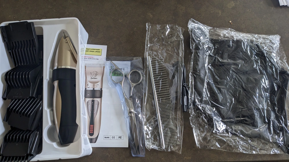 Brand new cordless pet clipper with ceramic blade, not plastic. Includes multiple attachments, scissors, comb, and carrying pouch. Great for grooming pets. Asking $15.