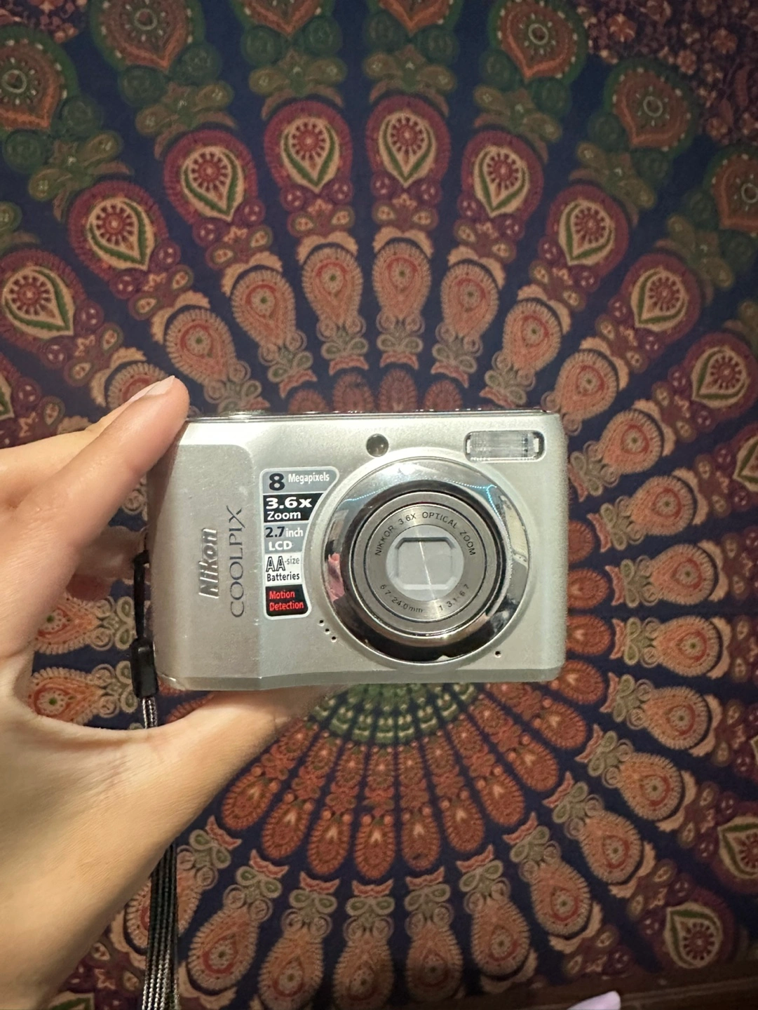 Compact digital camera. Features 8 Megapixels, 3.6x Zoom, and a 2.7-inch LCD screen. Uses AA batteries. Great for casual photography. AA batteries powered, comes with a case.
