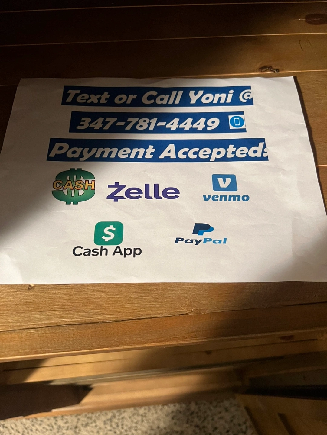 Payment - Cash, Venmo, Zelle or CashApp.