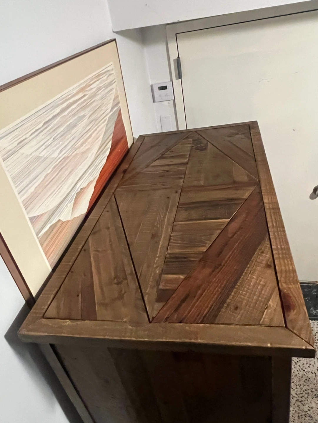 Made with reclaimed pine wood and engineered wood