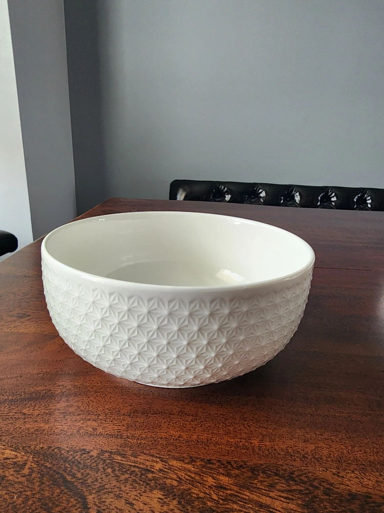 Buy & SellWhite Ceramic Bowl with Embossed PatternWhite Ceramic Bowl with Embossed Pattern$5Large white ceramic bowl. Embossed geometric pattern. Perfect for serving or as a decorative piece.ConditionNewWHERE TO MEETCheck LocationView MapSELLERHpFletcher's Meadow12916 reviews0 chats·1 favorites·26 viewsSEND CHAT TO SELLERHi Hp! I’m interested in your listing.Hi Hp! I’m interested in your listing.Get the Karrot app to chatSign In to chat
