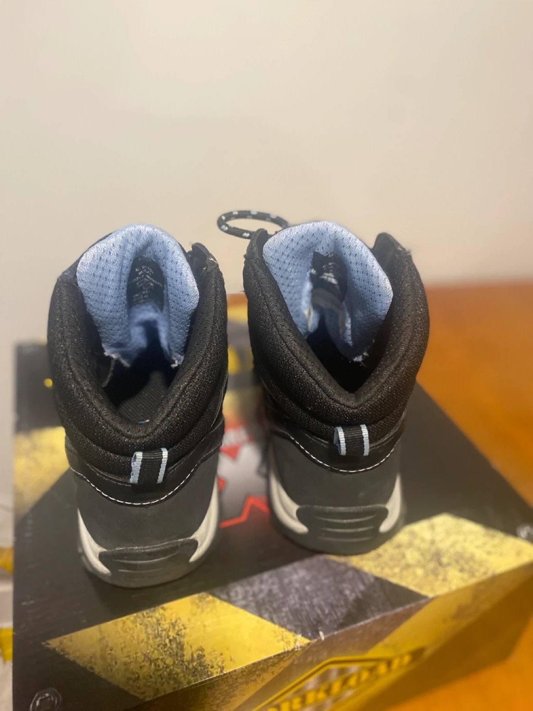 Workload composite toe work boots in black. These boots feature a durable construction with a composite toe for protection. They come with the original box. Used for 1 day.