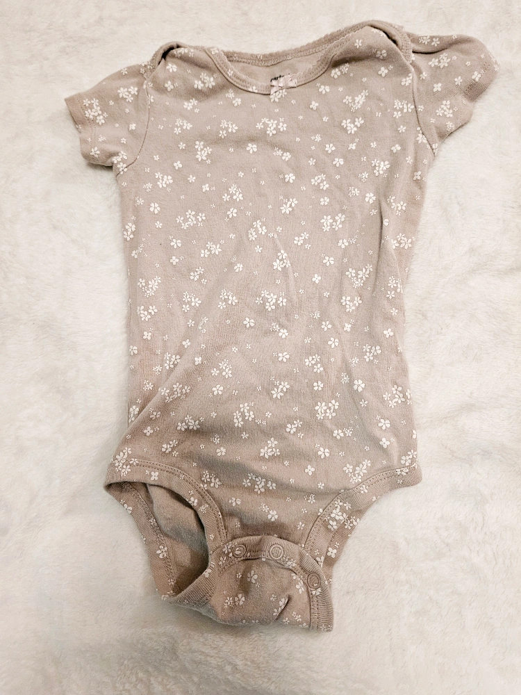 💚Adorable Carter's baby bodysuit. Size 24 months. Beige colour with small white floral print. Short sleeves, snap crotch closure. 💚
