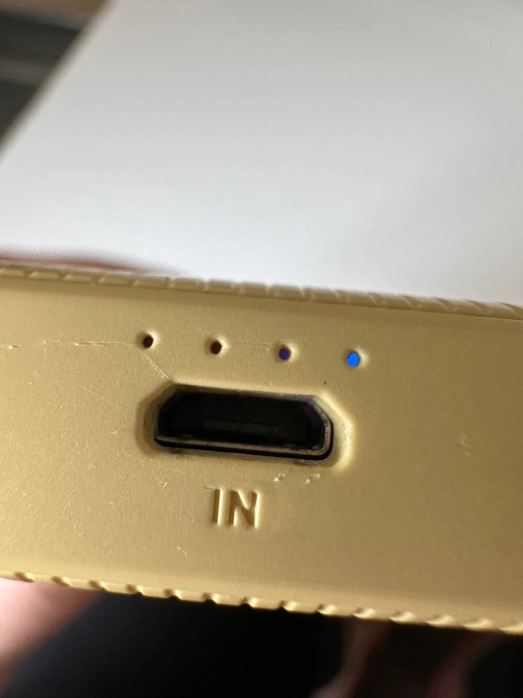 Work very well, I haven't used it a lot so I want to give it to someone who will make better use of it! It is a used MINISO portable charger. Pale yellow colour. Features two USB output ports and one micro-USB input port. Includes a short USB charging cable.