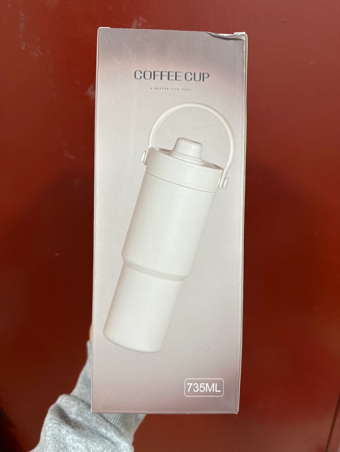 White insulated coffee cup. Brand new in box. Portable handle. Keeps drinks hot/cold. 735ml capacity. Selling as I have too many!
