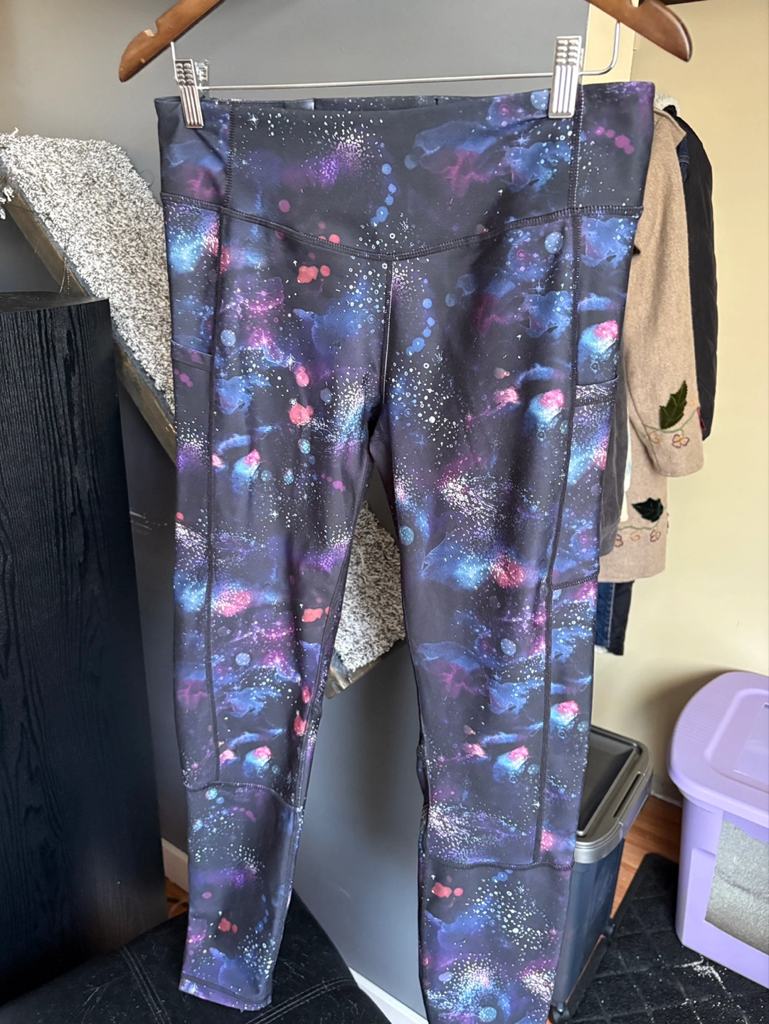 Like new condition. Comfortable athletic wear with side pockets. Great for yoga or workouts.