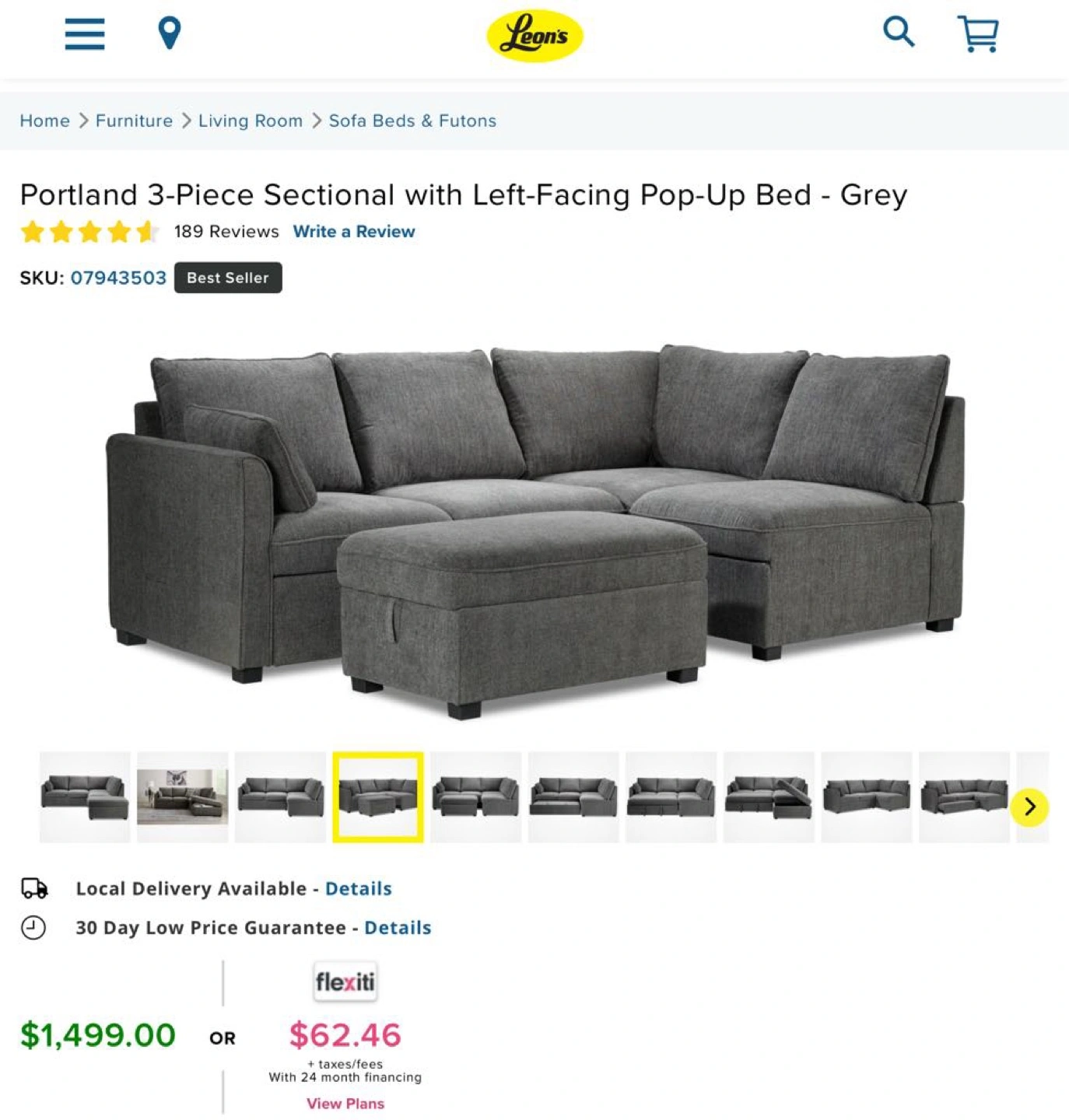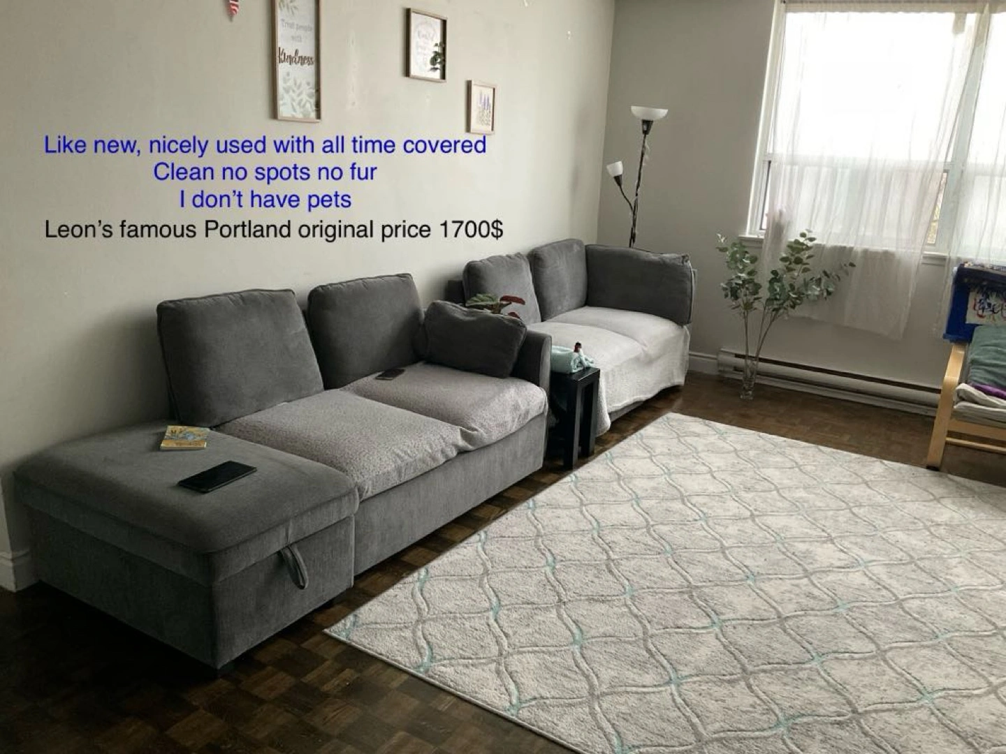 Like new, nicely used sectional sofa. Always covered, clean, no spots or fur. Pull-out bed included. Original price $1700.