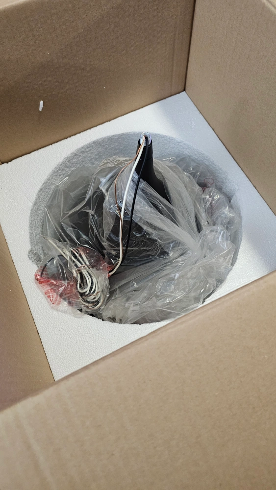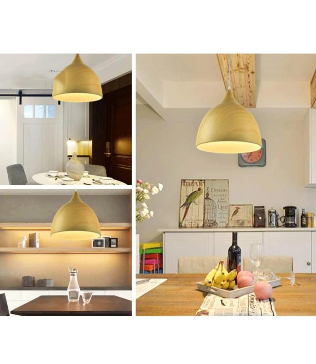 New in box pendant light. Black and wood finish options available. Includes all mounting hardware. Simple, stylish design. Perfect for kitchen or dining room.