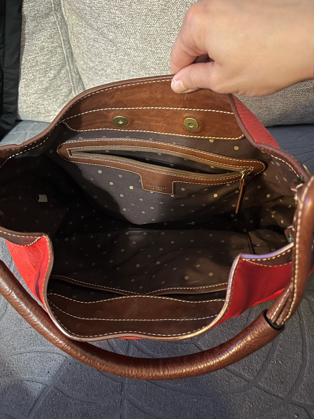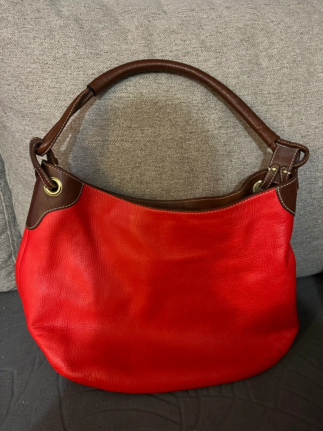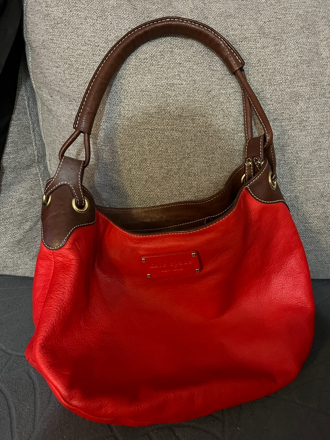 Red leather hobo Kate Spade bag. Brown leather trim. Interior pockets. Great everyday bag.