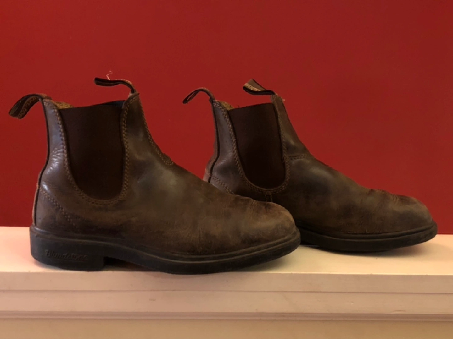 Blundstone boots. Rustic brown leather. Very comfortable for everyday wear.