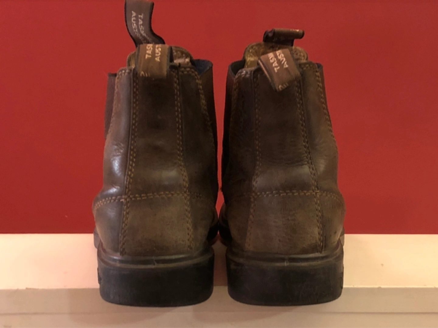 Blundstone boots. Rustic brown leather. Very comfortable for everyday wear.
