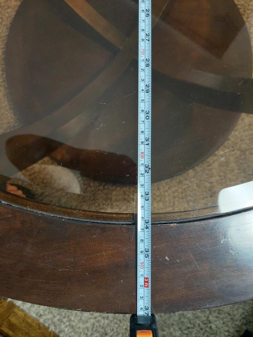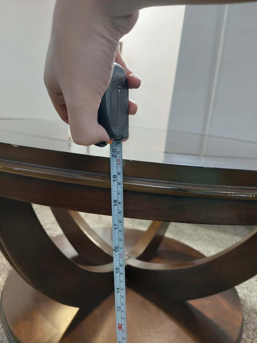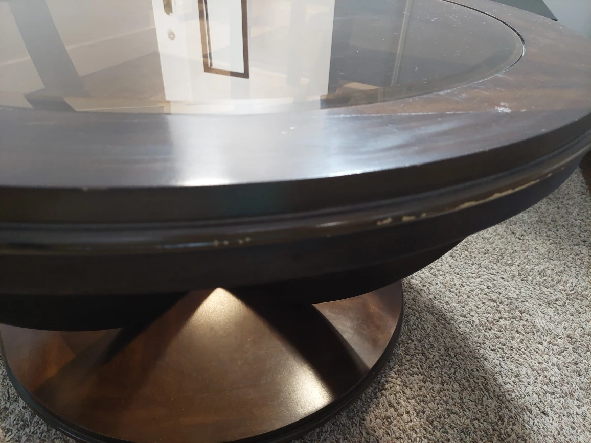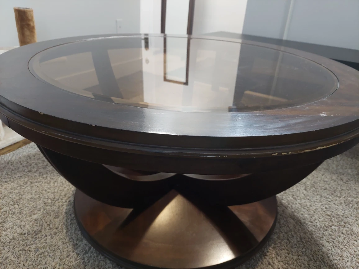 Round coffee table, very sturdy.