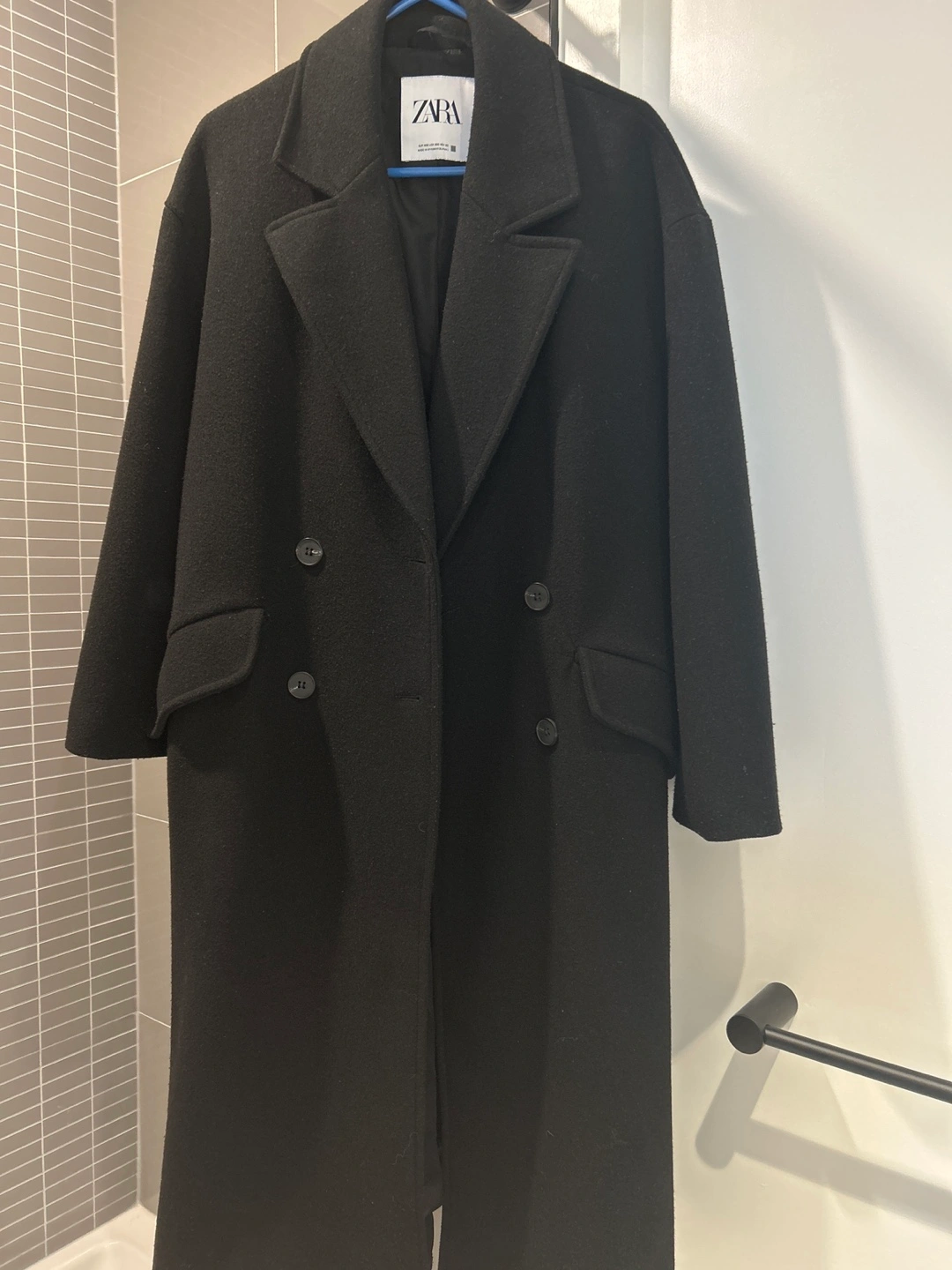 Zara Black Double-Breasted Wool Coat