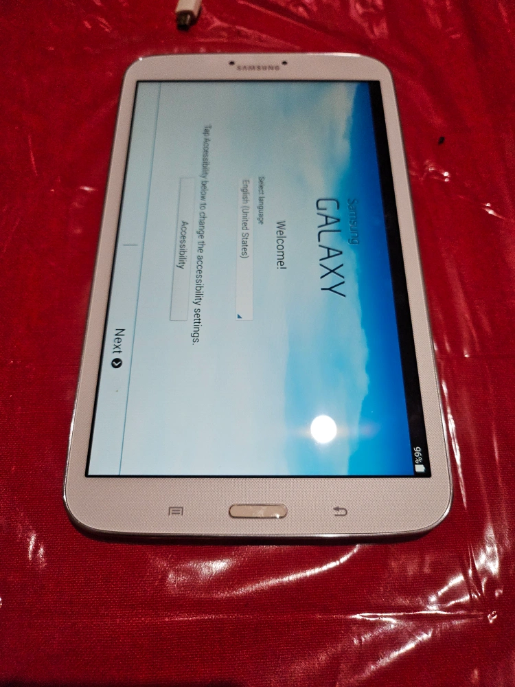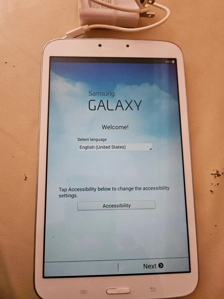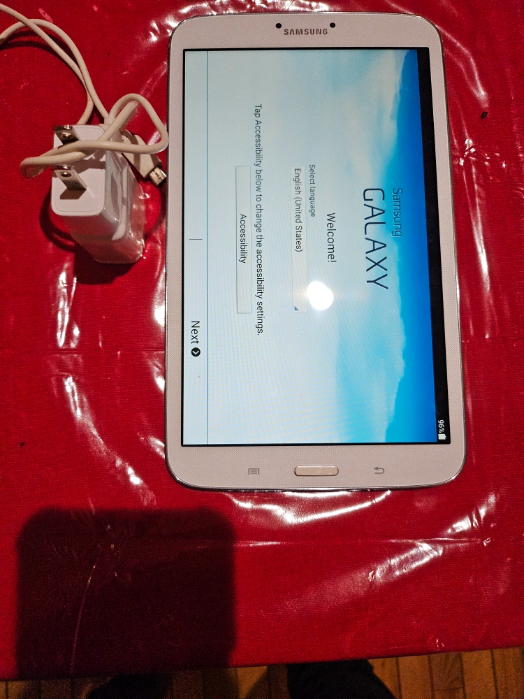 White Samsung Galaxy Tab 3 Lite 7-inch tablet. Model SM-T110. Includes charger. Ready to set up.
