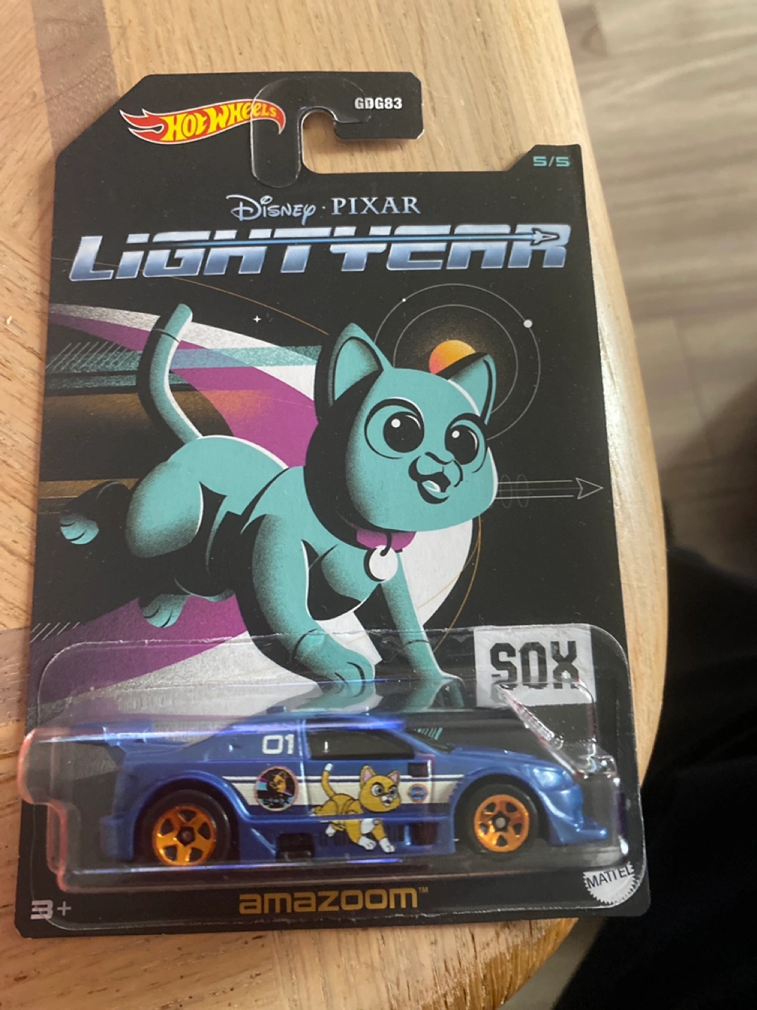 Set of 5 collectible Hot Wheels cars. Features artwork from Disney Pixar's Lightyear. Includes Buzz Lightyear, Sox, Star Command, Zurg, and a mysterious character. New in package.