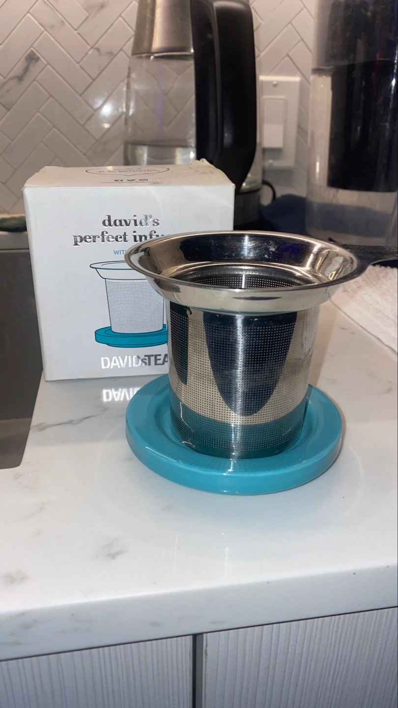 181Stainless steel tea infuser. Teal silicone base. Perfect for one cup of tea. Durable and stylish design.