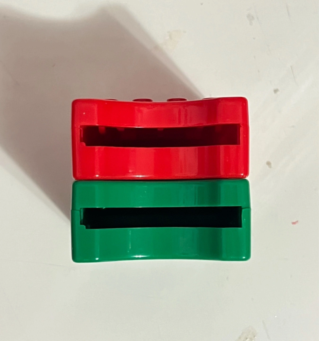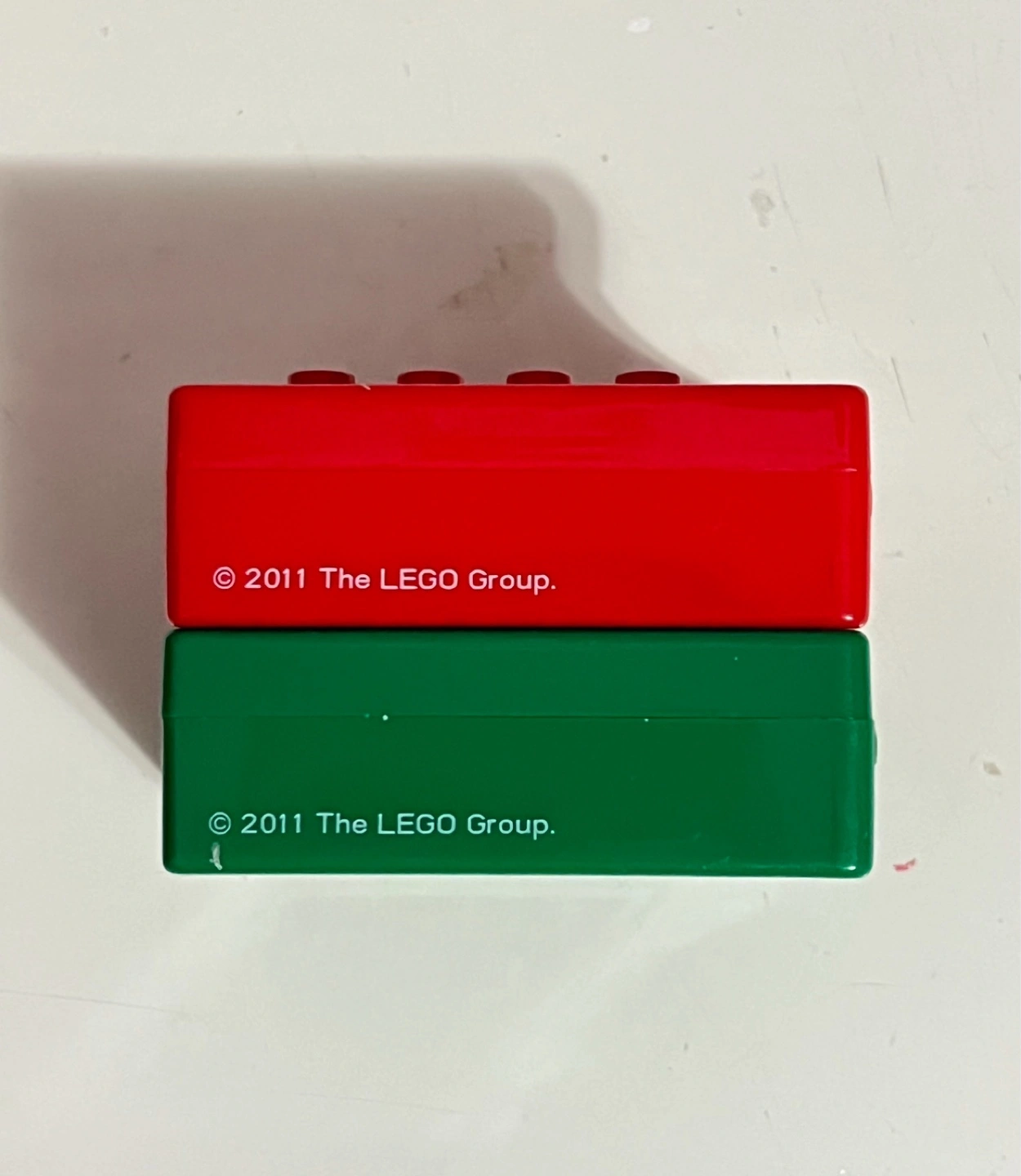 Two red and green Nintendo DS LEGO game cartridge cases. ONLY FITS NINTENDO DS GAMES