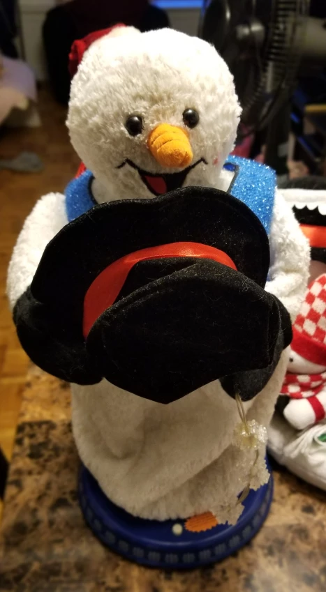 Buy & SellMusical SnowmanMusical Snowman$20A singing snowman. Moves black top hat uo and down and spins snowflake hand strand. Battery operated. Pick up only. Thanks. ConditionLike newWHERE TO MEETLansdowne Avenue & Dupont StreetView MapSELLERTaniaWallace Emerson675 reviews0 chats·0 favorites·8 viewsSEND CHAT TO SELLERHi Tania! I’m interested in your listing.Hi Tania! I’m interested in your listing.Get the Karrot app to chatSign In to chat