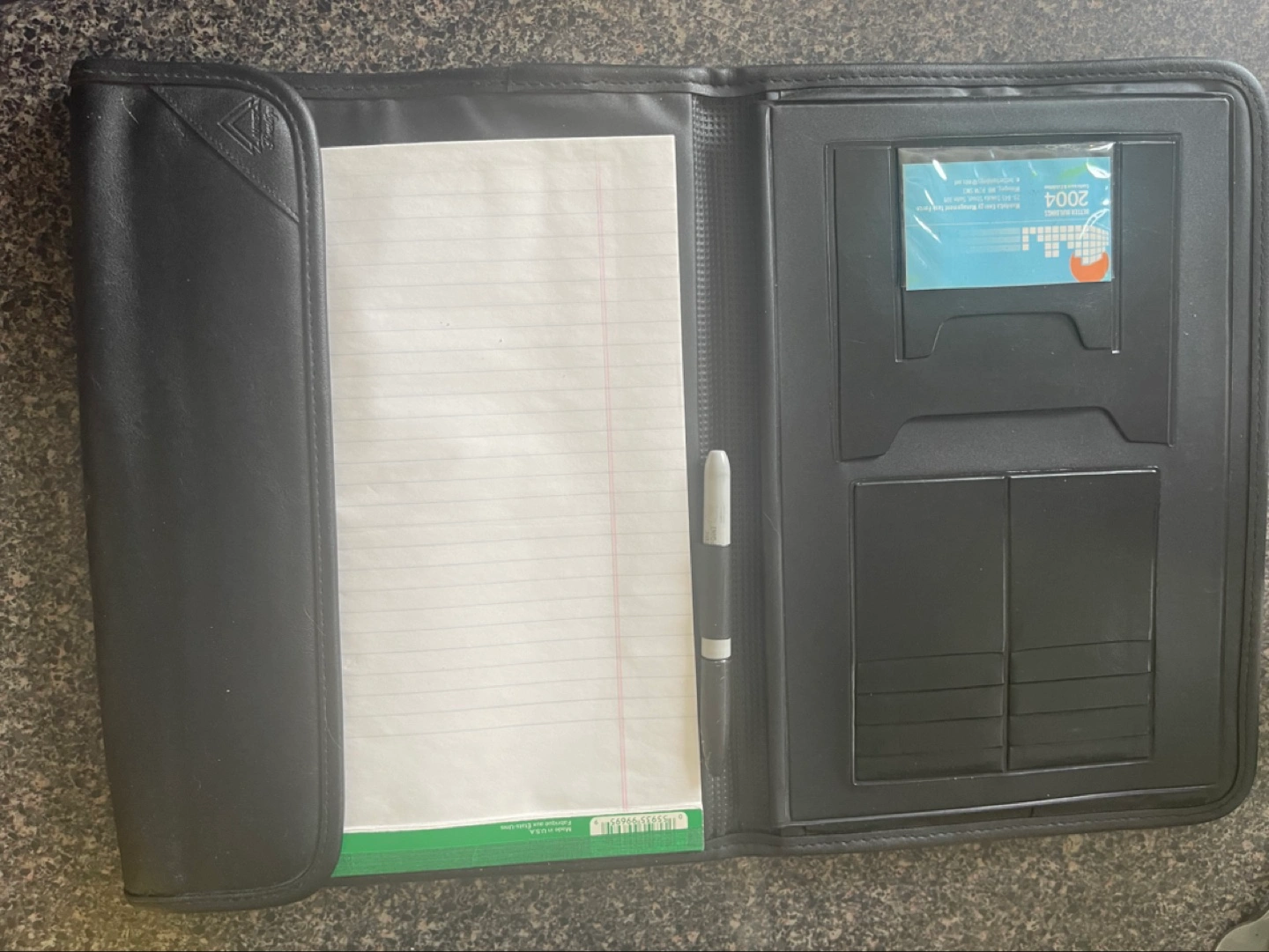 Black LEATHER portfolio. Contains notepad and pen. Multiple card slots. From the Better Buildings 2004 Conference & Exhibition.