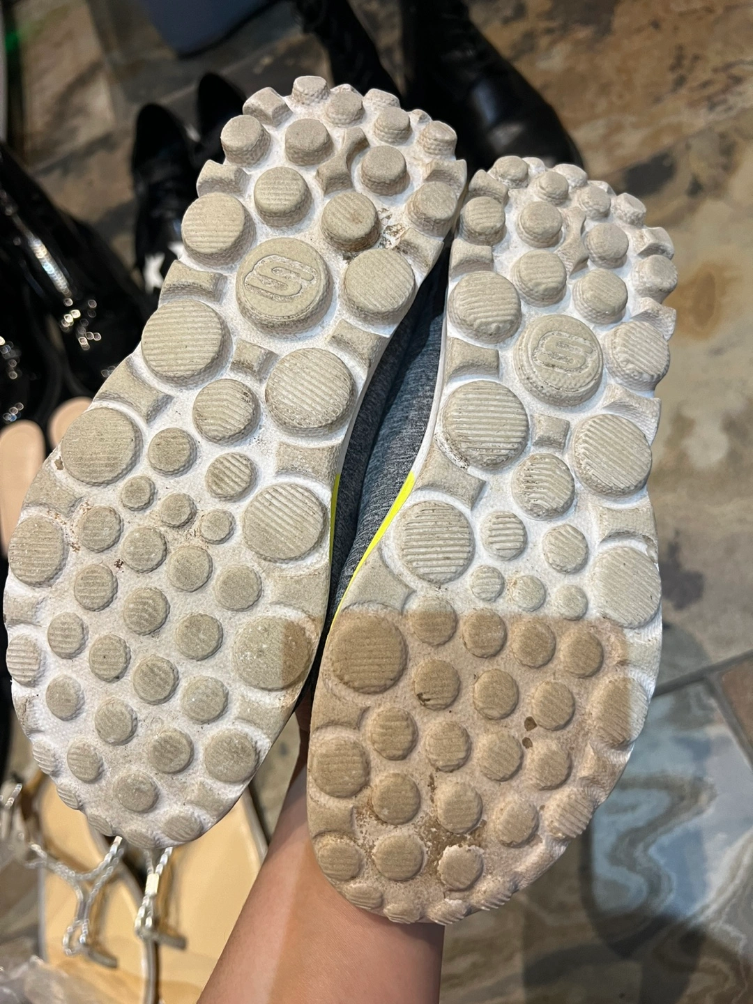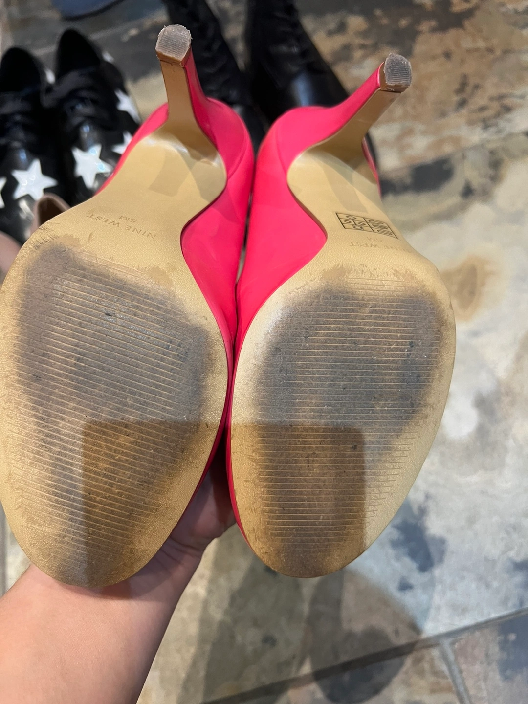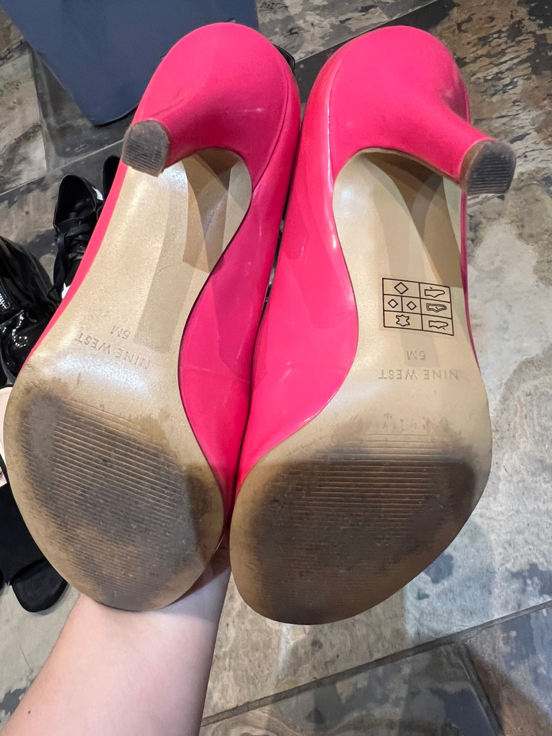 Pair of Nine West pink high heels. Size 5M Also, a pair of grey Skechers slip-on shoes. All size 5, or 22.5cm $10 for each