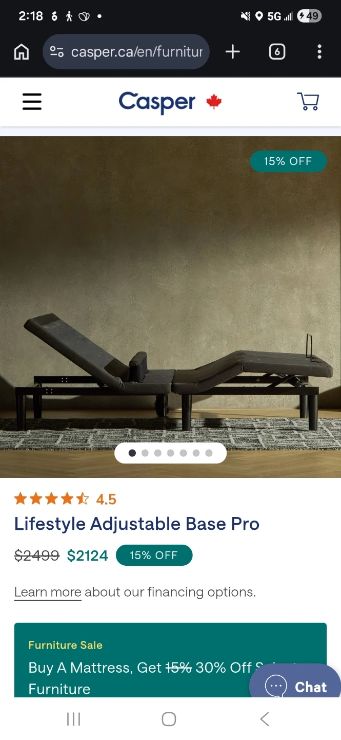 This is the Casper Lifestyle Adjustable Base Pro. It features adjustable head and foot sections for personalized comfort. The base is built with a durable metal frame.
