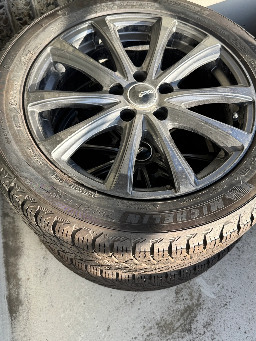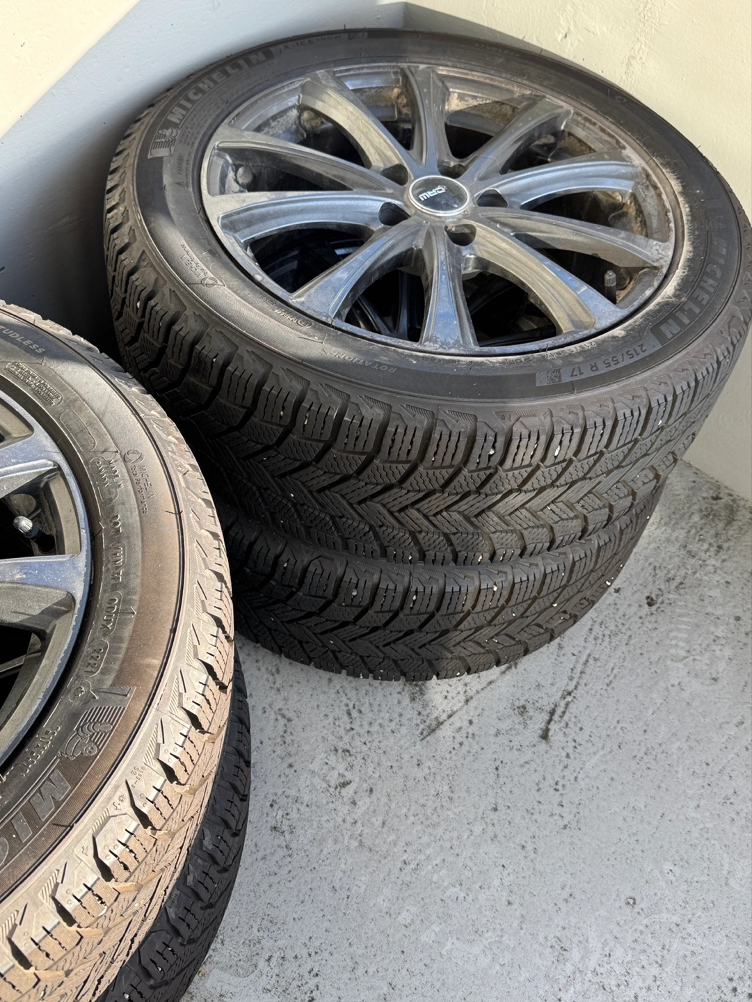 22Set of four used Michelin winter tires mounted on 17-inch alloy rims. Tires show no wear and tear. Good for a smaller vehicle. Made in Canada.