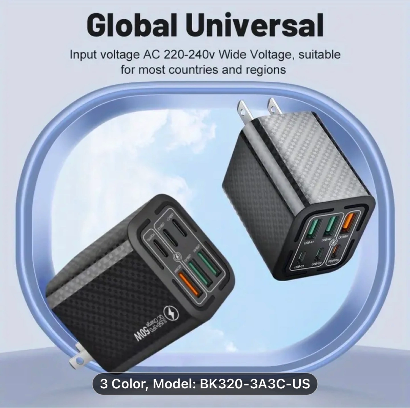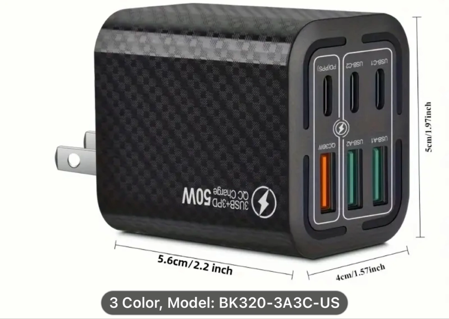 80Six-port USB fast charger. 50W output. Charges up to six devices simultaneously. Features QC 3.0 technology. Compact design. Model: BK320-3A3C-US $20 each or 3 pieces for $15 each.
