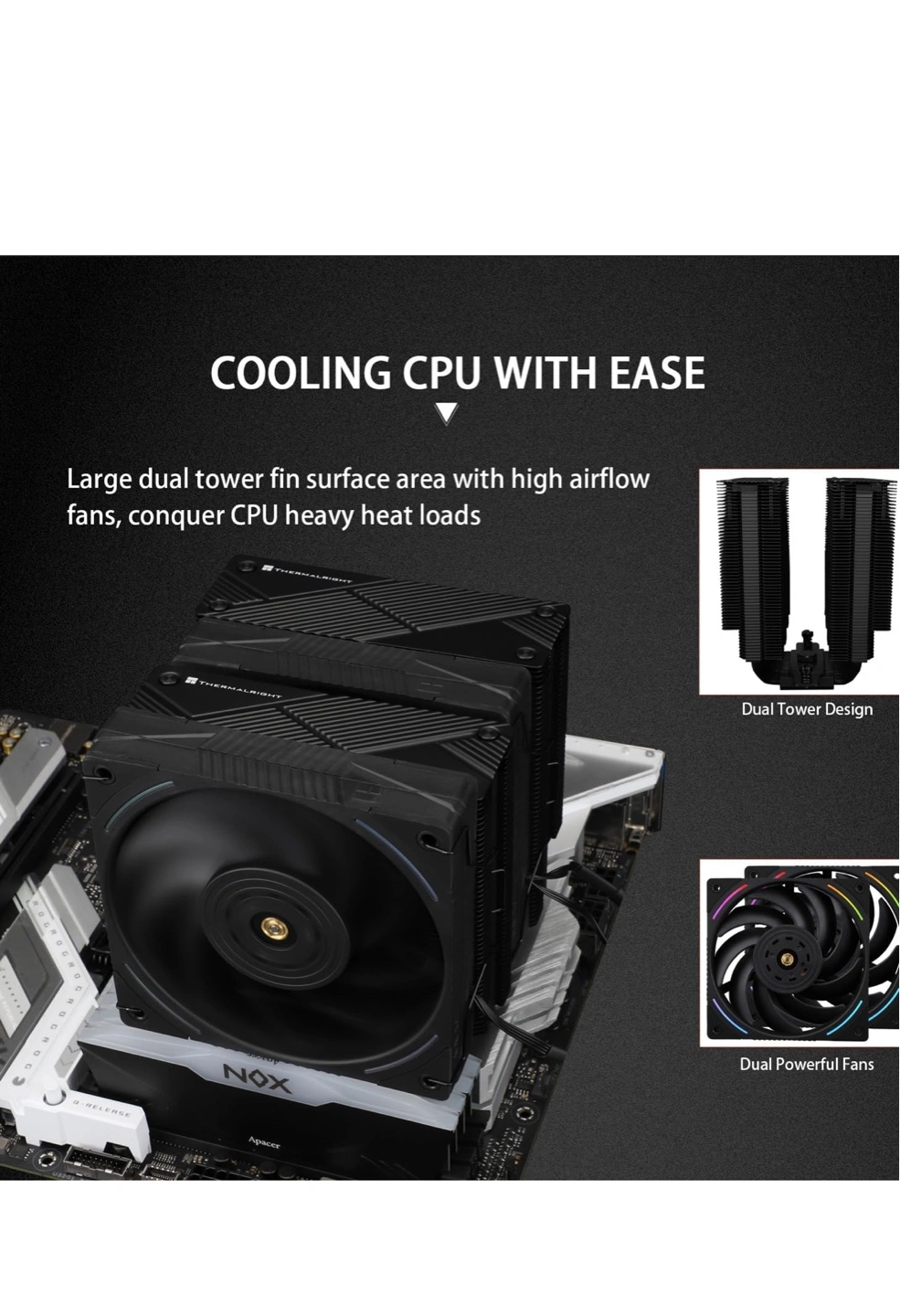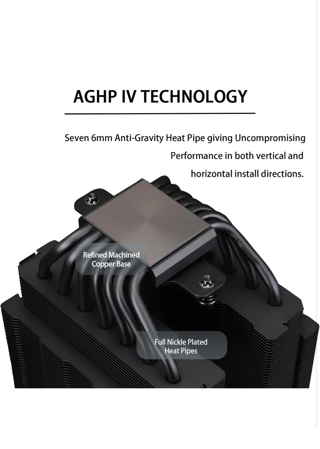 Premium CPU air cooler. Seven 6mm anti-gravity heat pipes. Refined machined copper base. Full nickel-plated heat pipes. Supports Intel LGA115X/1200/1700/2011/2066 and AMD AM4/AM5.