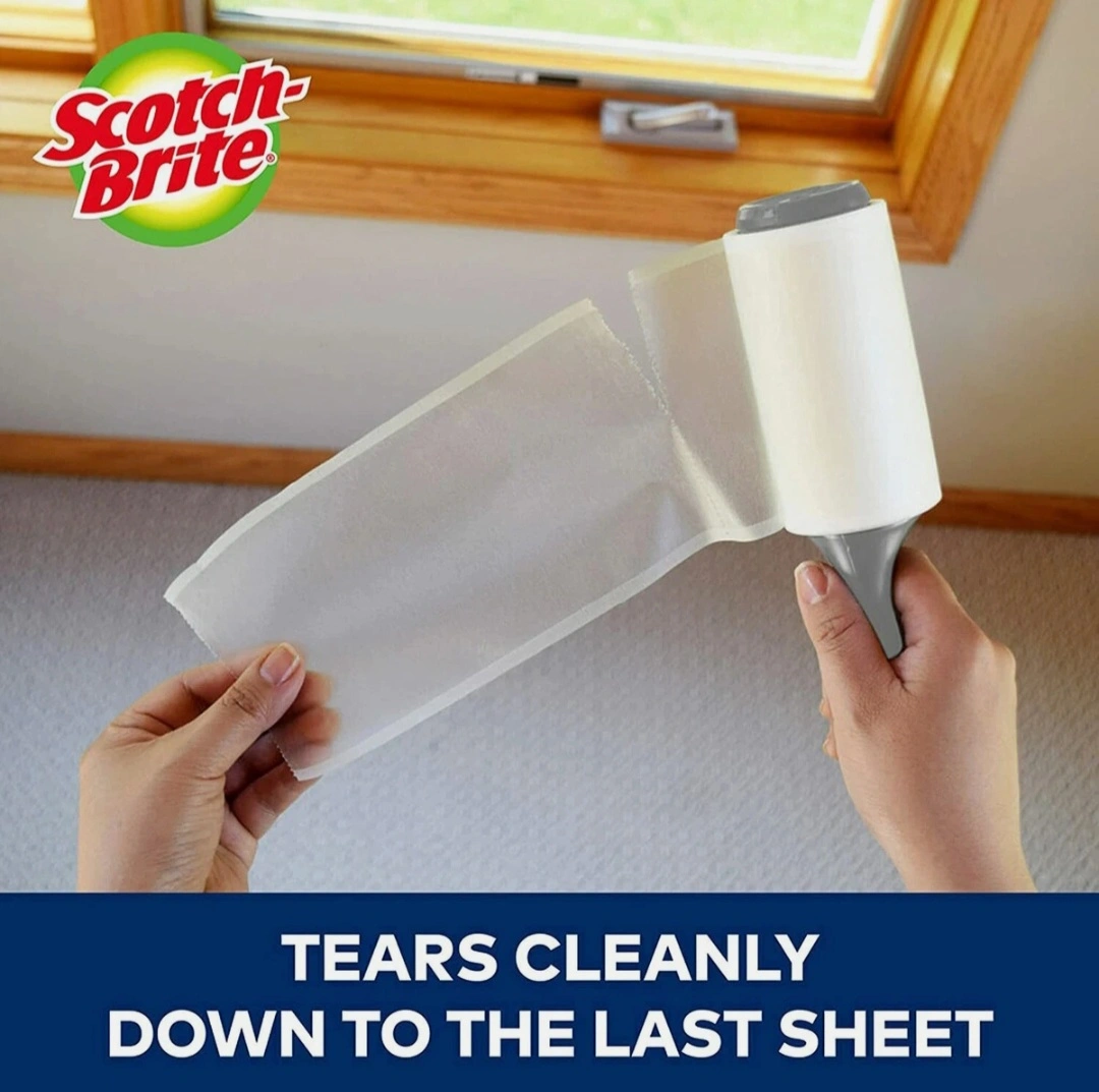 Reliable Scotch brand adhesive ensures effective lint removal.