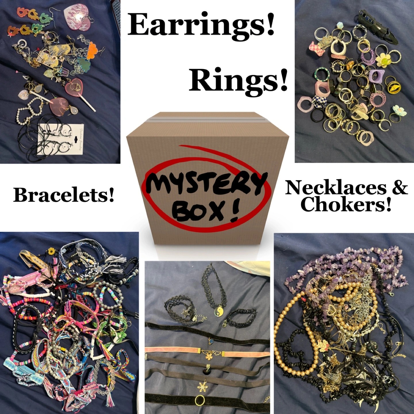 Pieces are randomly selected, but you can pick the amount of each (ex. 3 of each, 4 bracelets and 4 necklaces and 4 rings, etc.) and your preference of silver or gold for all but the bracelets.