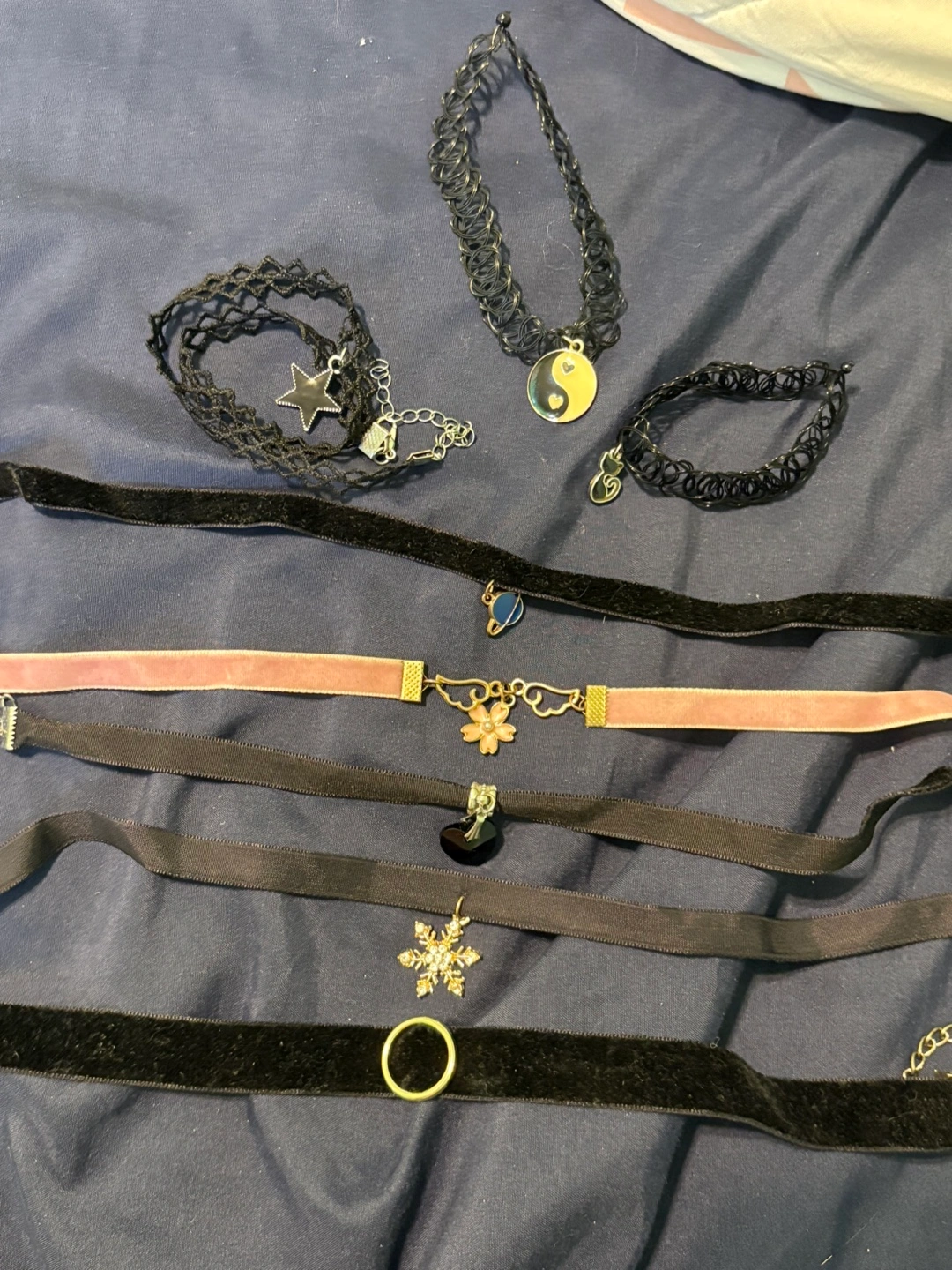 Pieces are randomly selected, but you can pick the amount of each (ex. 3 of each, 4 bracelets and 4 necklaces and 4 rings, etc.) and your preference of silver or gold for all but the bracelets.