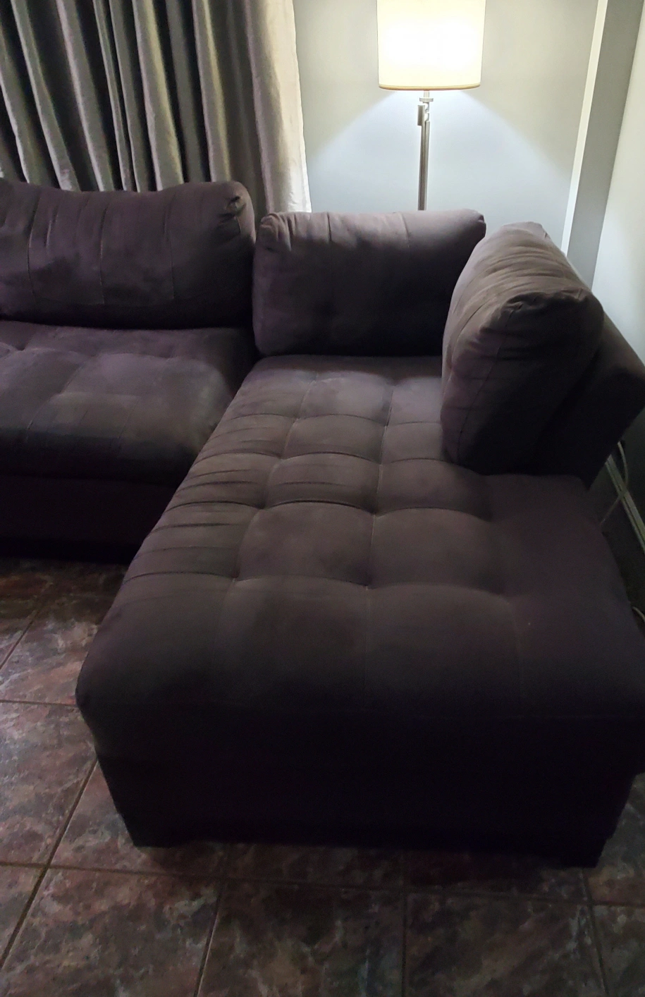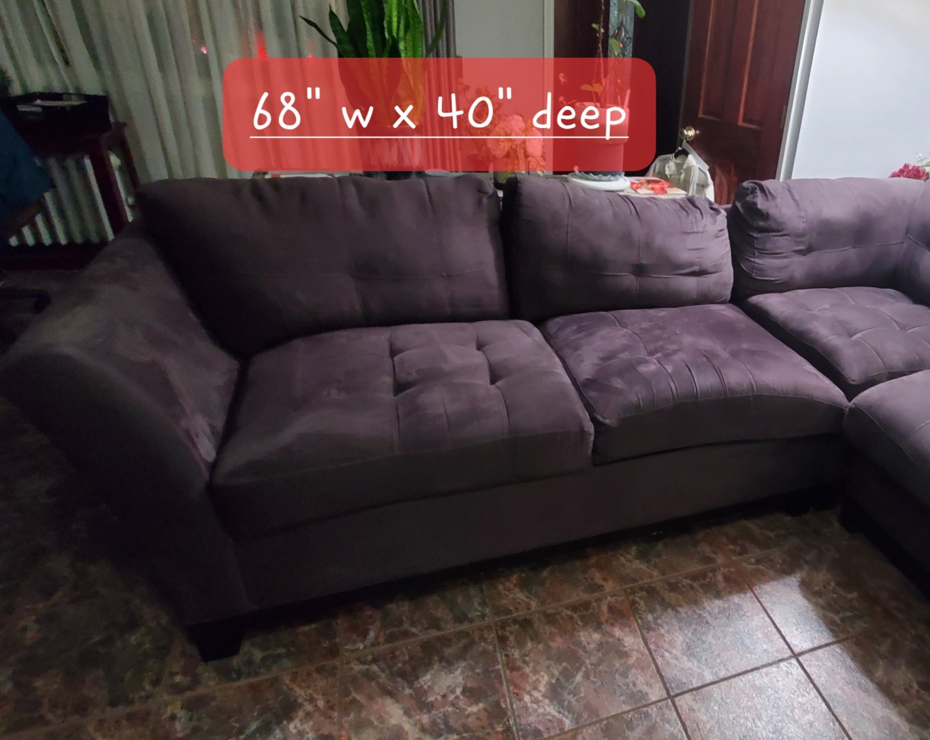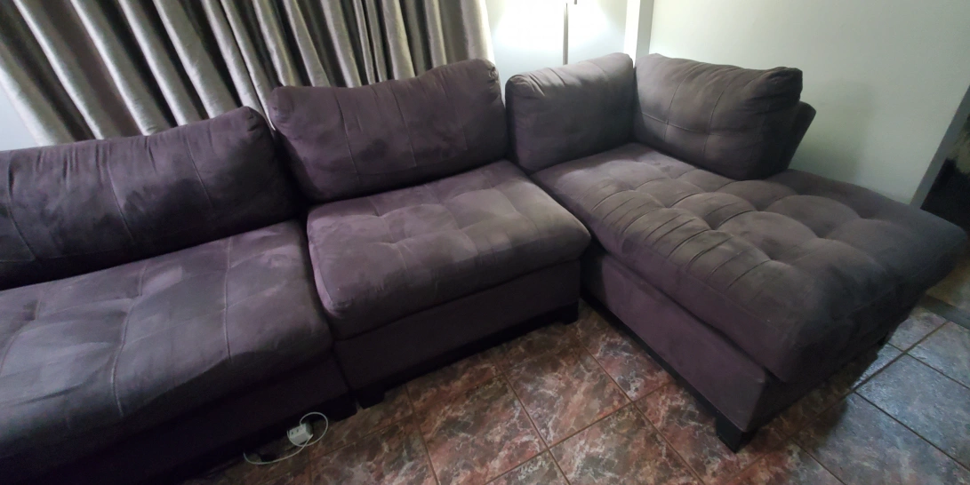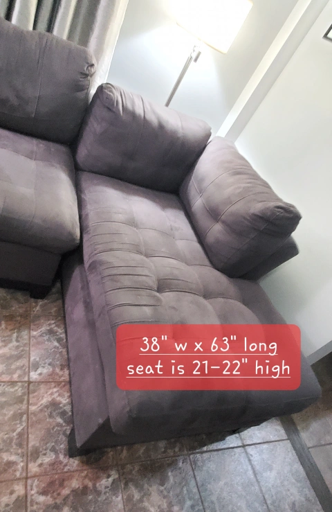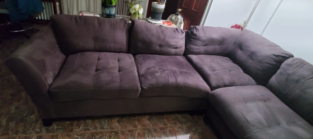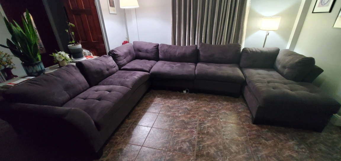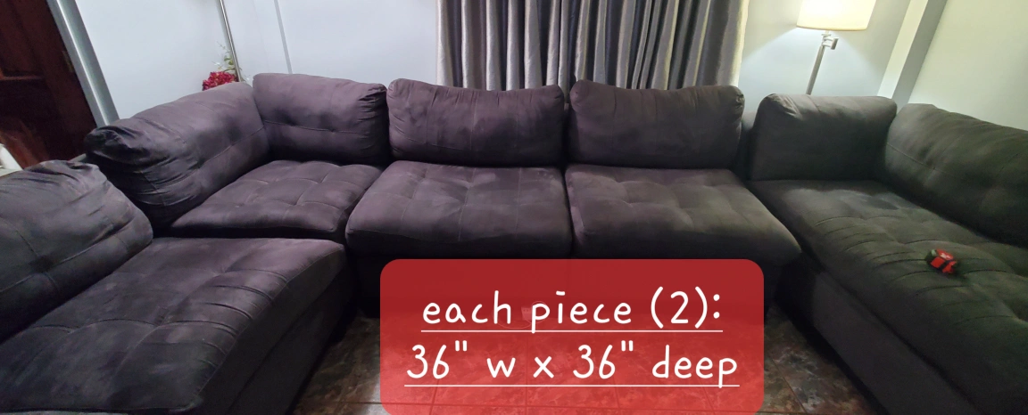 Sectional sofa, 5 piece: chaise, 2 center pieces, corner piece and side sofa. Measurements for each piece are in the pictures. They're comfortable and wide enough to use as a bed when you take out the back cushions. Microfiber makes it a snap to clean, no tears, charcoal gray color. Bought from Raymour & Flanigan. Orig price $3,800. Normal wear, still in good shape. Need to go by this weekend. Pelham Bay area.