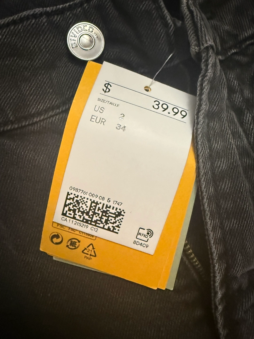 26H&M Wide leg jeans, dark grey colour. Size 2 US, 34 EUR. New with tags.