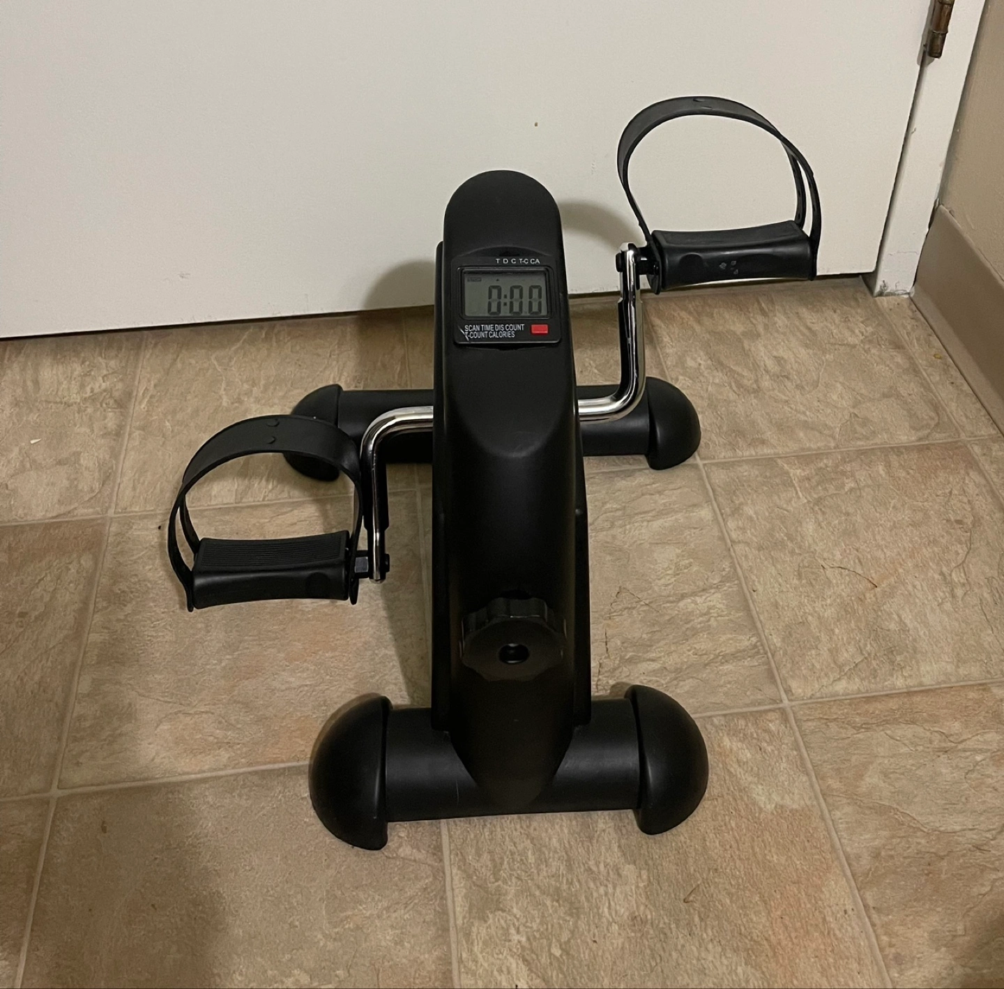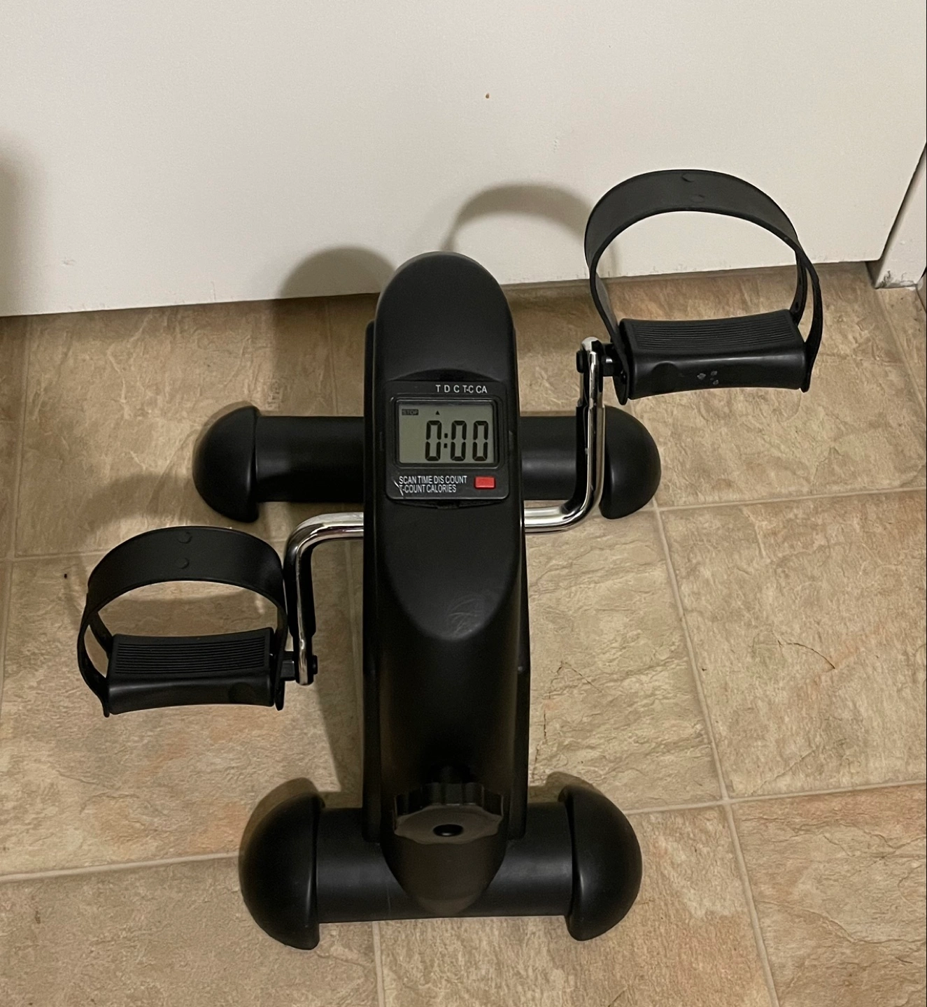 Compact pedal leg, foot, knee, and arm exerciser. Great for home and office workouts. Digital display shows time, revolutions, and calories. Adjustable resistance. Barely used. Cash and pick up only.