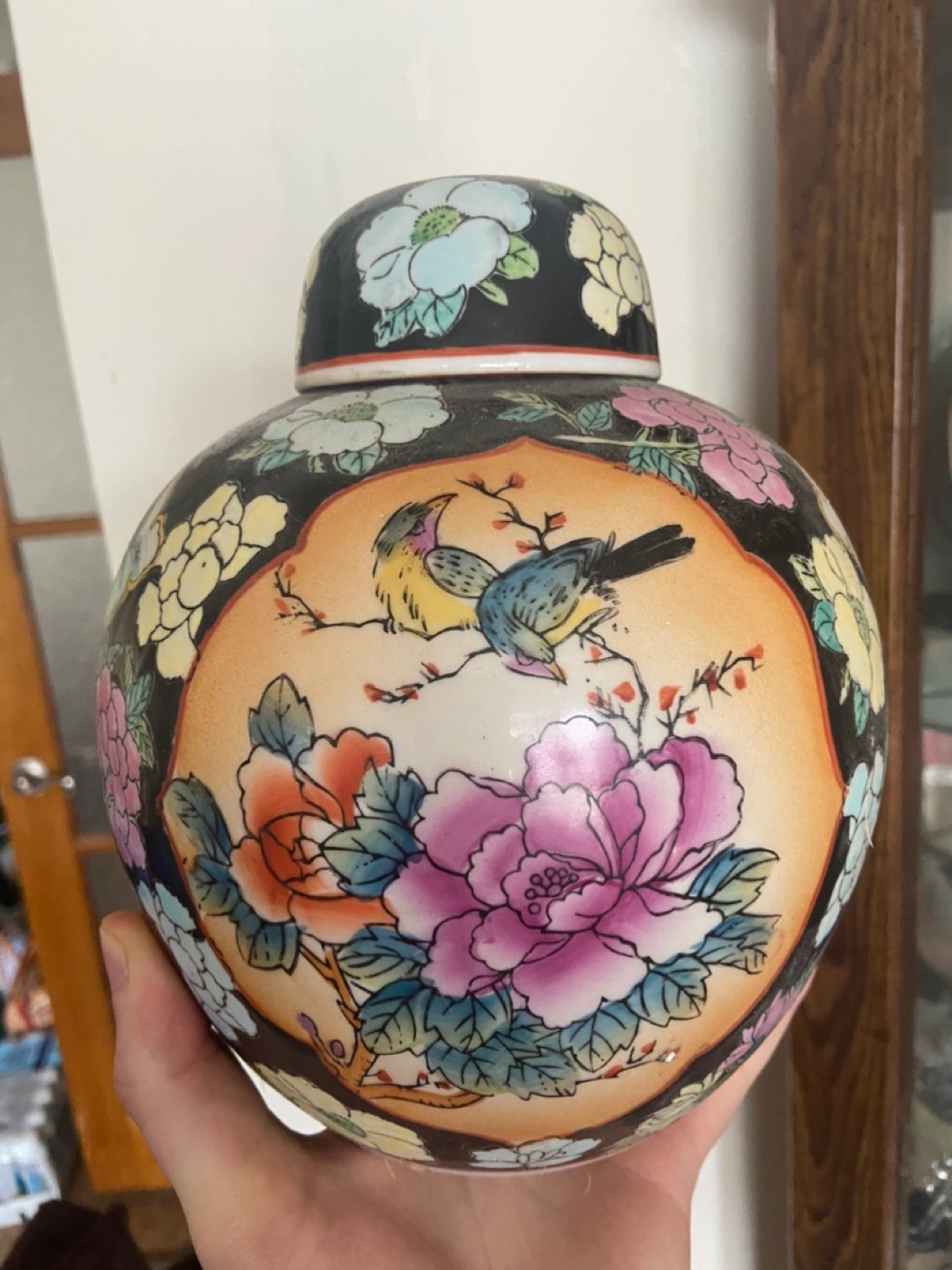Vintage Asian-style Porcelain Jar with Lid Chinese