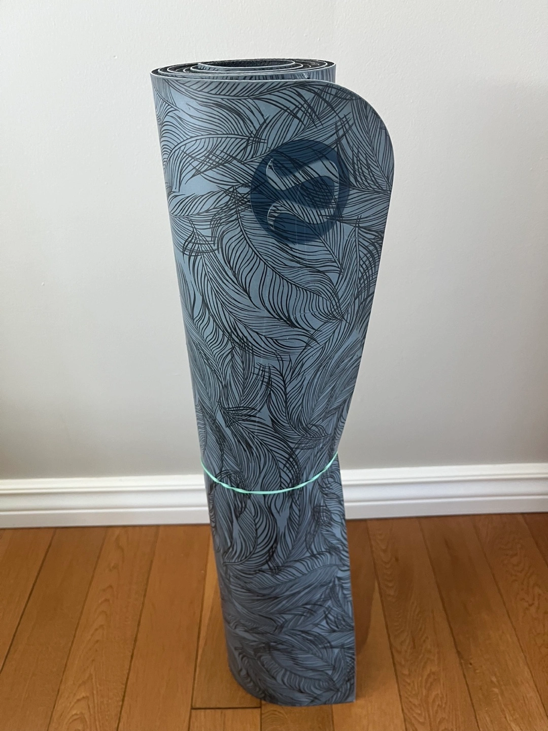 Reversible yoga mat. 5mm thick. Sketchy Palm Blue Denim / Deep Coal colourway. Pick up in Utopia, has some marks and scratches on the design side. Pick up in Utopia