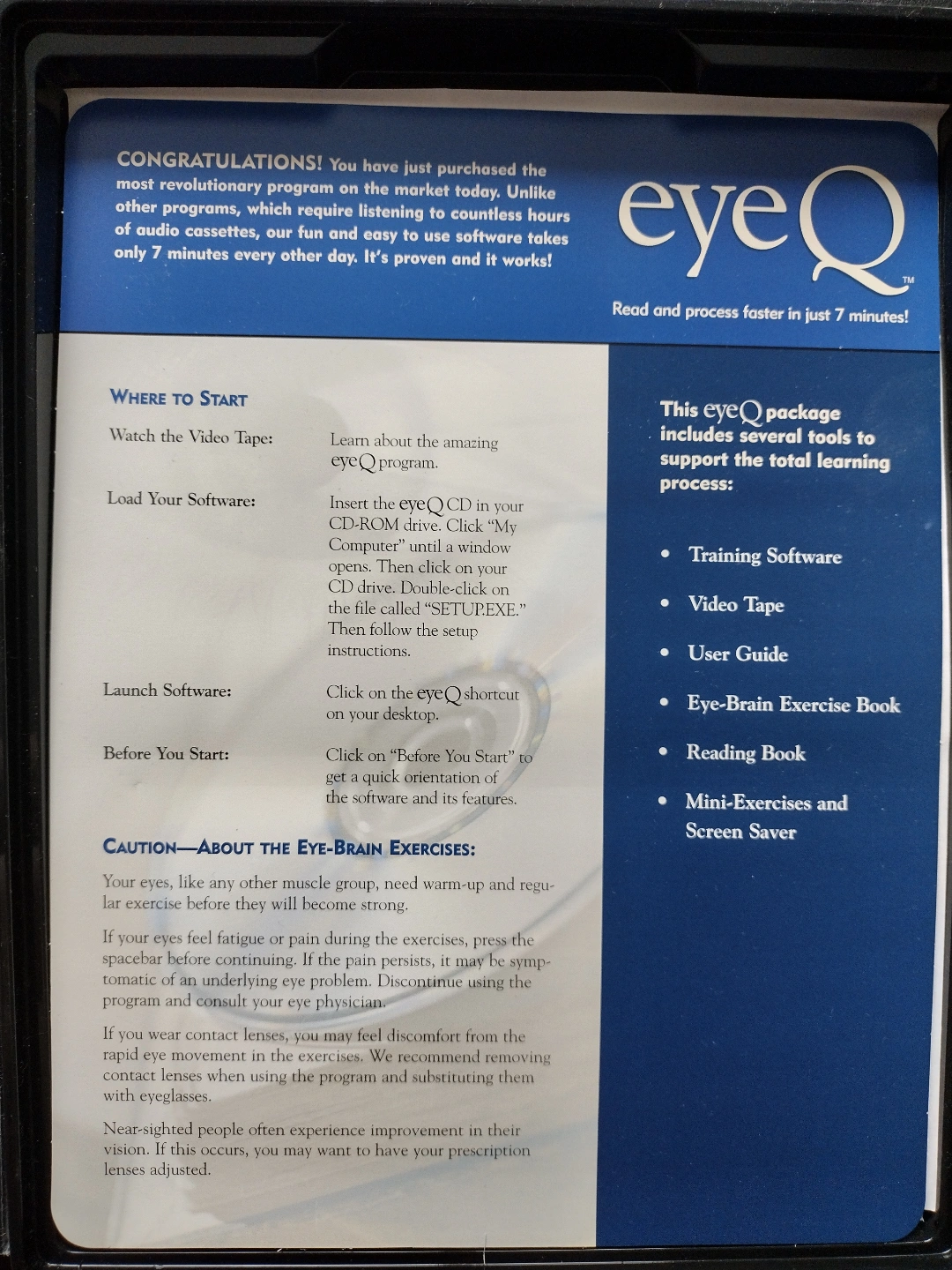 Oldie but goodie. Guess you can call it vintage. Speed reading software. Includes CD-ROM, user guide, and exercise book. Proven software takes only 7 minutes per day.